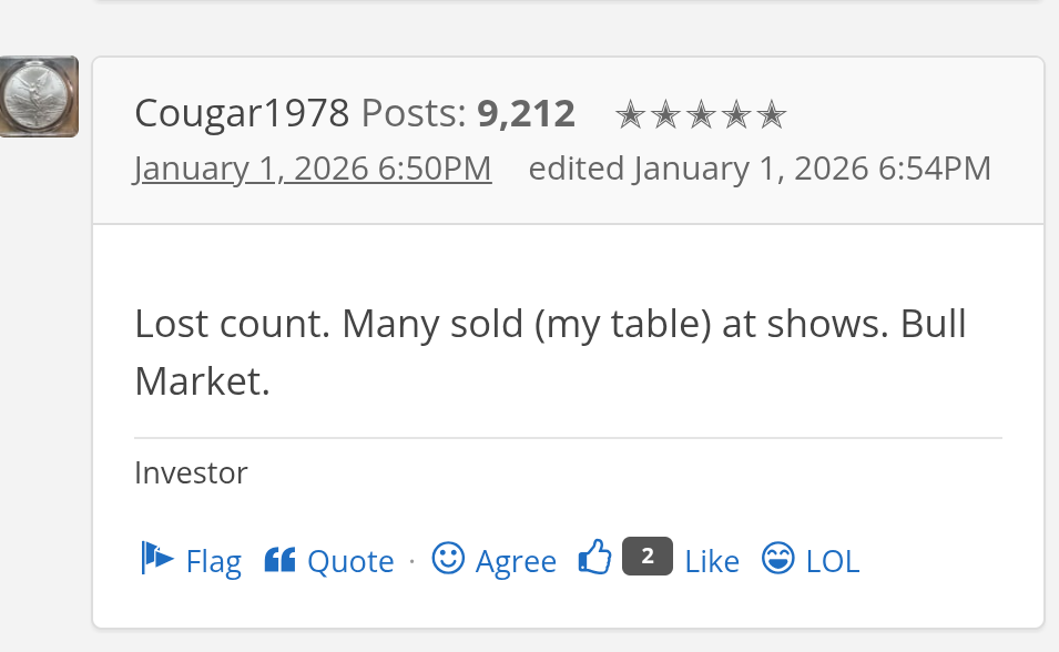 It was a pretty spendy year for me and my collection, but I sold one real numismatic coin and a lot of bullion, and the proceeds of the sales covered nearly 2/3 the cost of the new purchases.