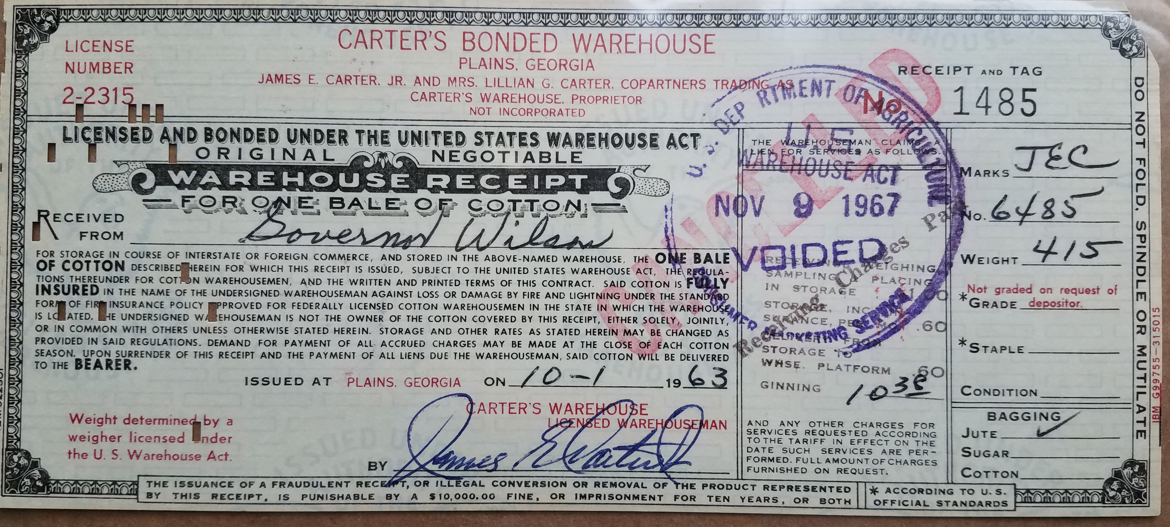 This is a Carter Warehouse receipt signed by Jimmy Carter that I picked up several years ago.