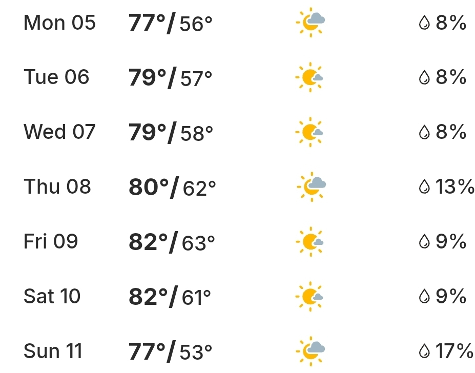 Looks like I won't pack an umbrella. A jacket is even questionable.
