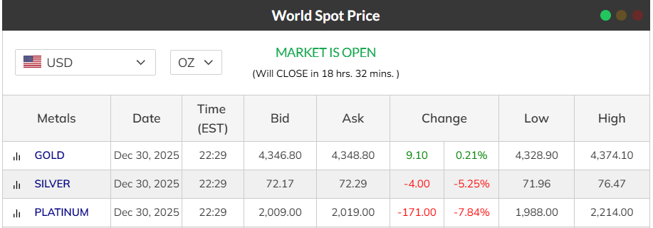 down 1.40 on kitco now