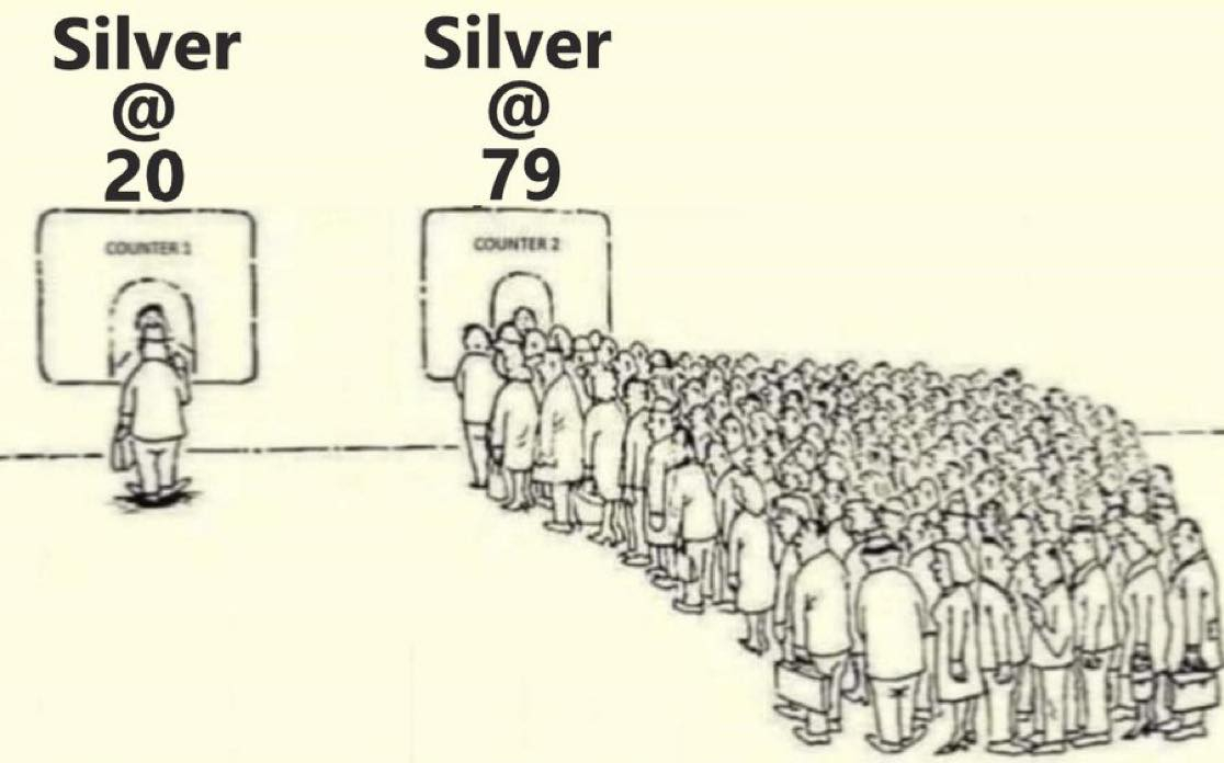 The physical squeeze will become so severe people will actually start believing the hype that it's rarer than gold. It is not and it will come on the market in massive waves because people act in tandem. The first wave will sink the price but all that silver (~200,000,000 Ot) will be absorbed in short order. This will limit the size of subsequent waves because it will be gone into product and storage by those who make product. By then almost all production will be tied up contractually.