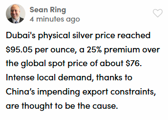 their restrictions on silver exports will not pass. There was a time not long ago that their silver bailed out the LBMA. That won't happen again. The China thing won't pass. It will affect supply and price for quite a while.