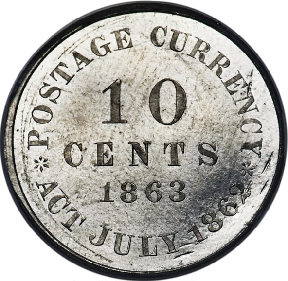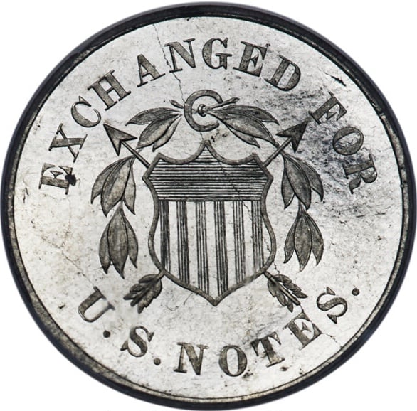 From what I learned, during the Civil War circulating coinage became scarce. This pattern 10C was a proposed solution using aluminum rather than silver & intended for small transactions. It seems only 31(?) were minted in two stages.