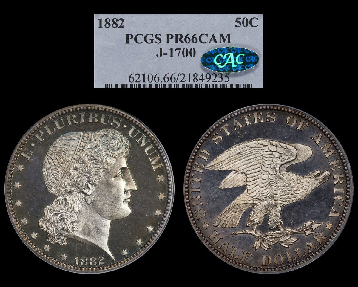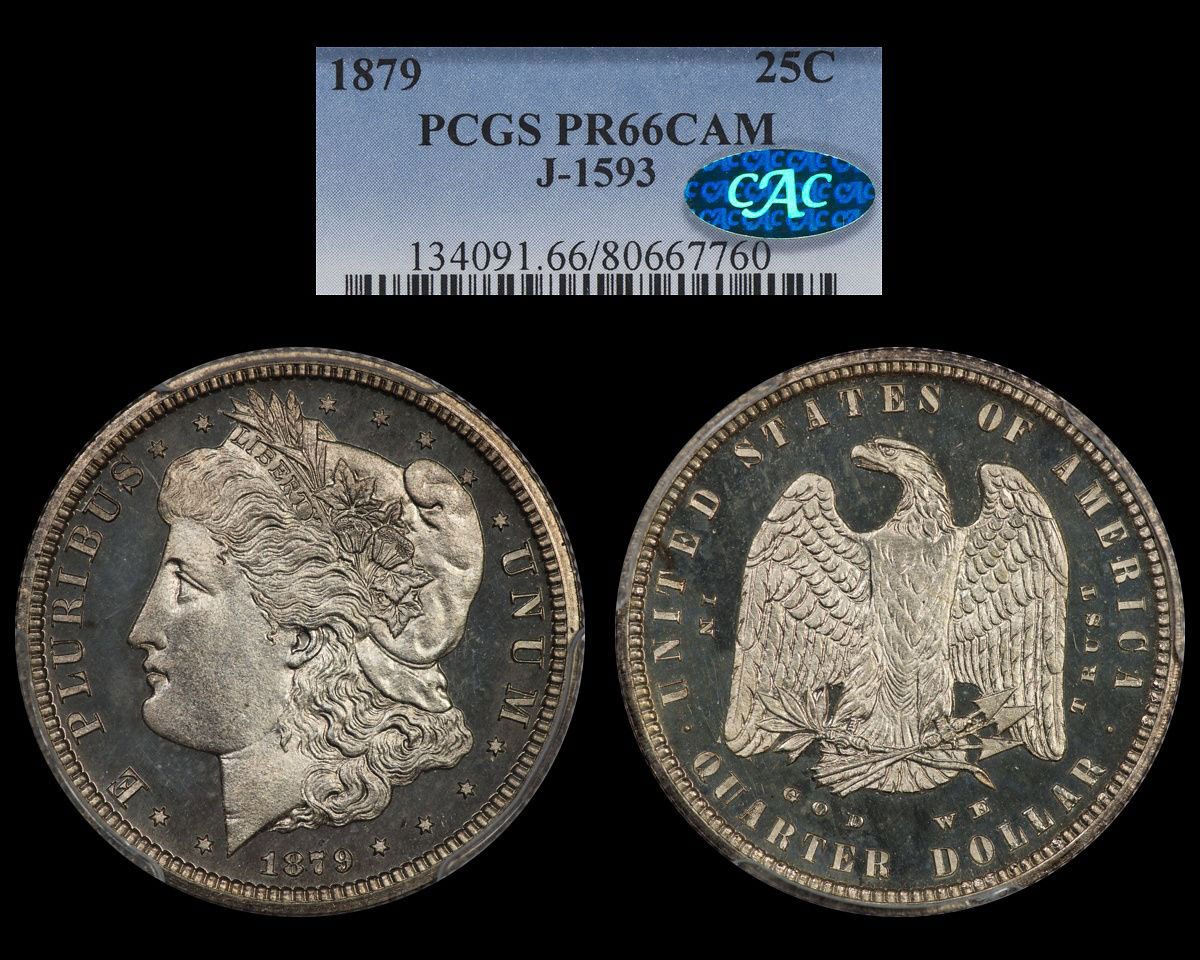 Longacre Seated Princess Dollar, 1870, R-7, PCGS 65 proof, population 3 with one higher. From a Kagin auction sale circa 1974.