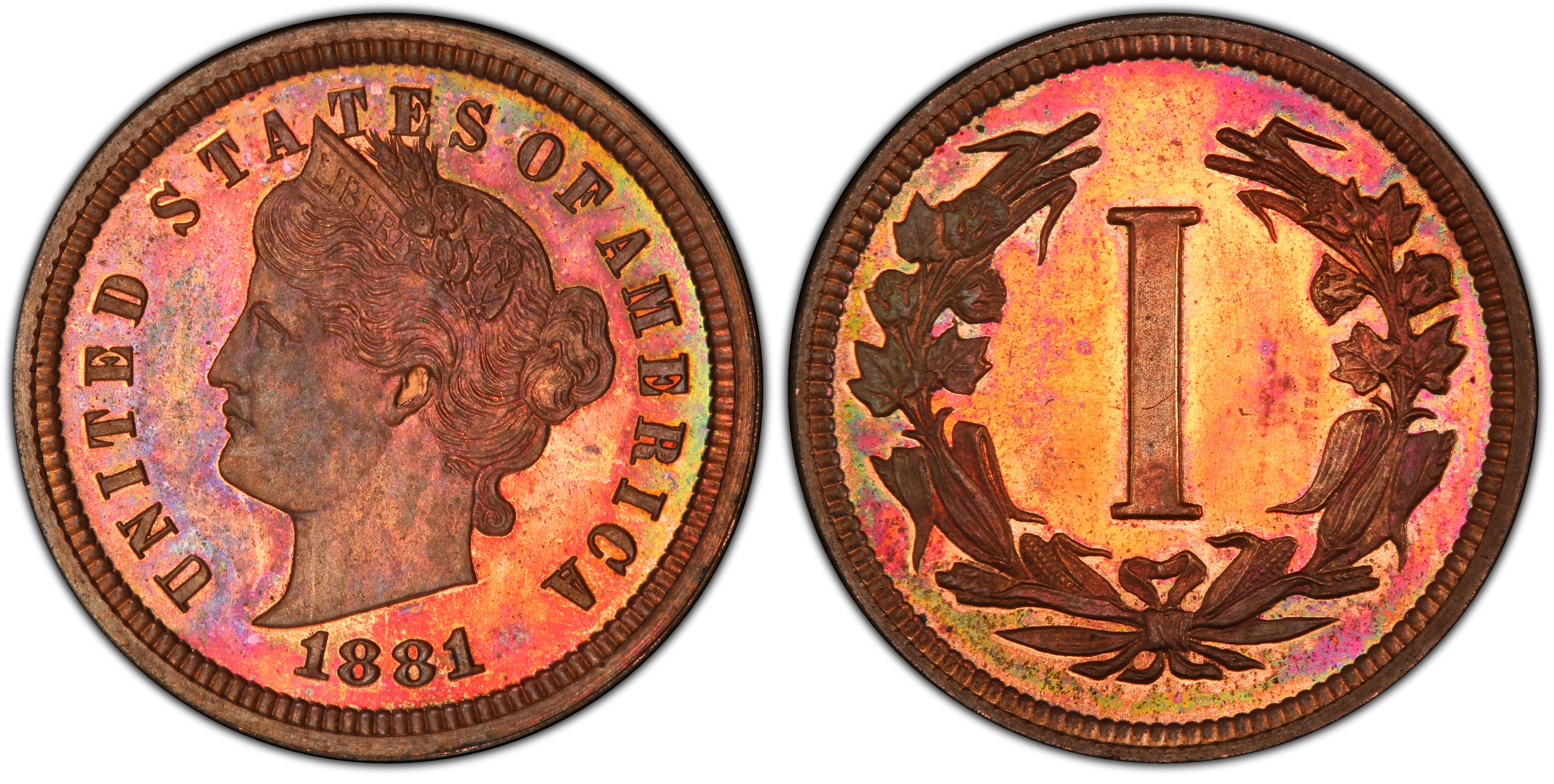 Sea-green, reddish, and blue tints make an appearance, making for a lovely original skin. Fields flash with healthy proof brilliance, while the central devices are lightly frosted.