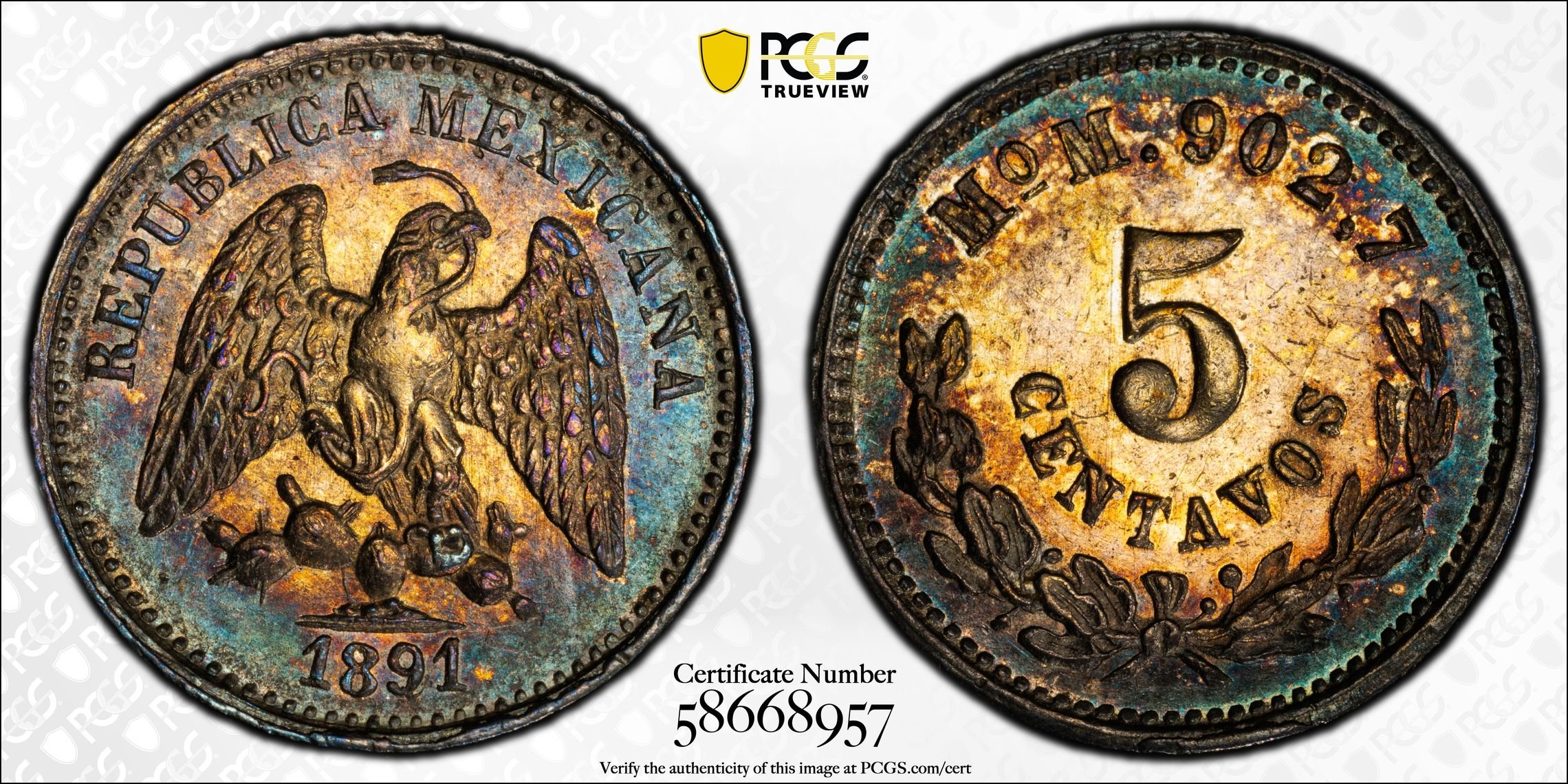AU 58. Original skin and frankly more attractive in hand thanks to some very pleasing edge color the TV isn’t picking up.