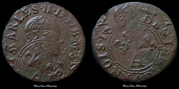 Ardennes - Charles II de Gonzague, denier tournois 1653, overstrike