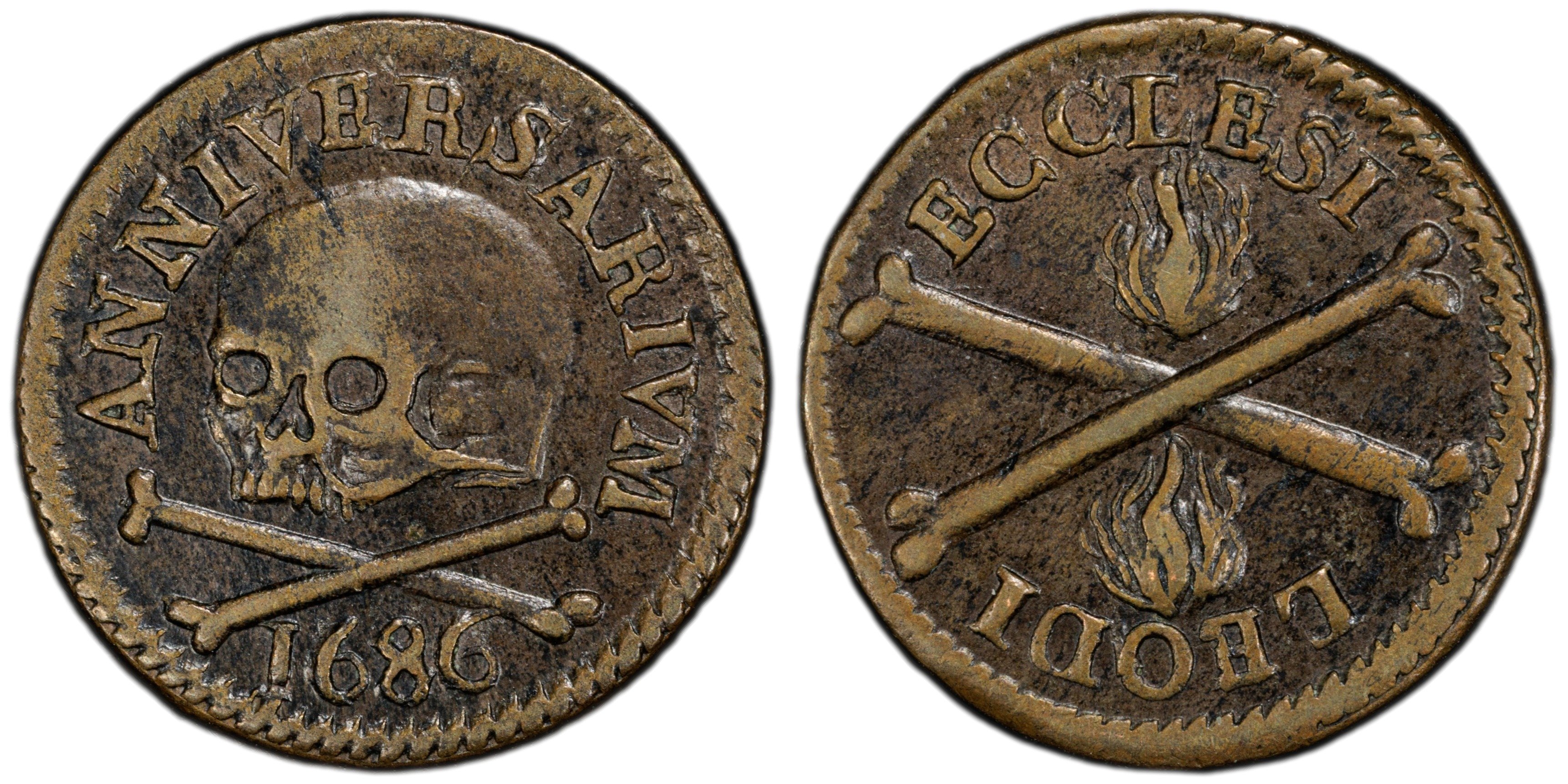 BELGIUM. Liège. Chapter of St. Lambert's Cathedral bronze Méreau or Communion Token. Issued 1686. Used for the receiving of food during feast day celebrations. PCGS AU-55.