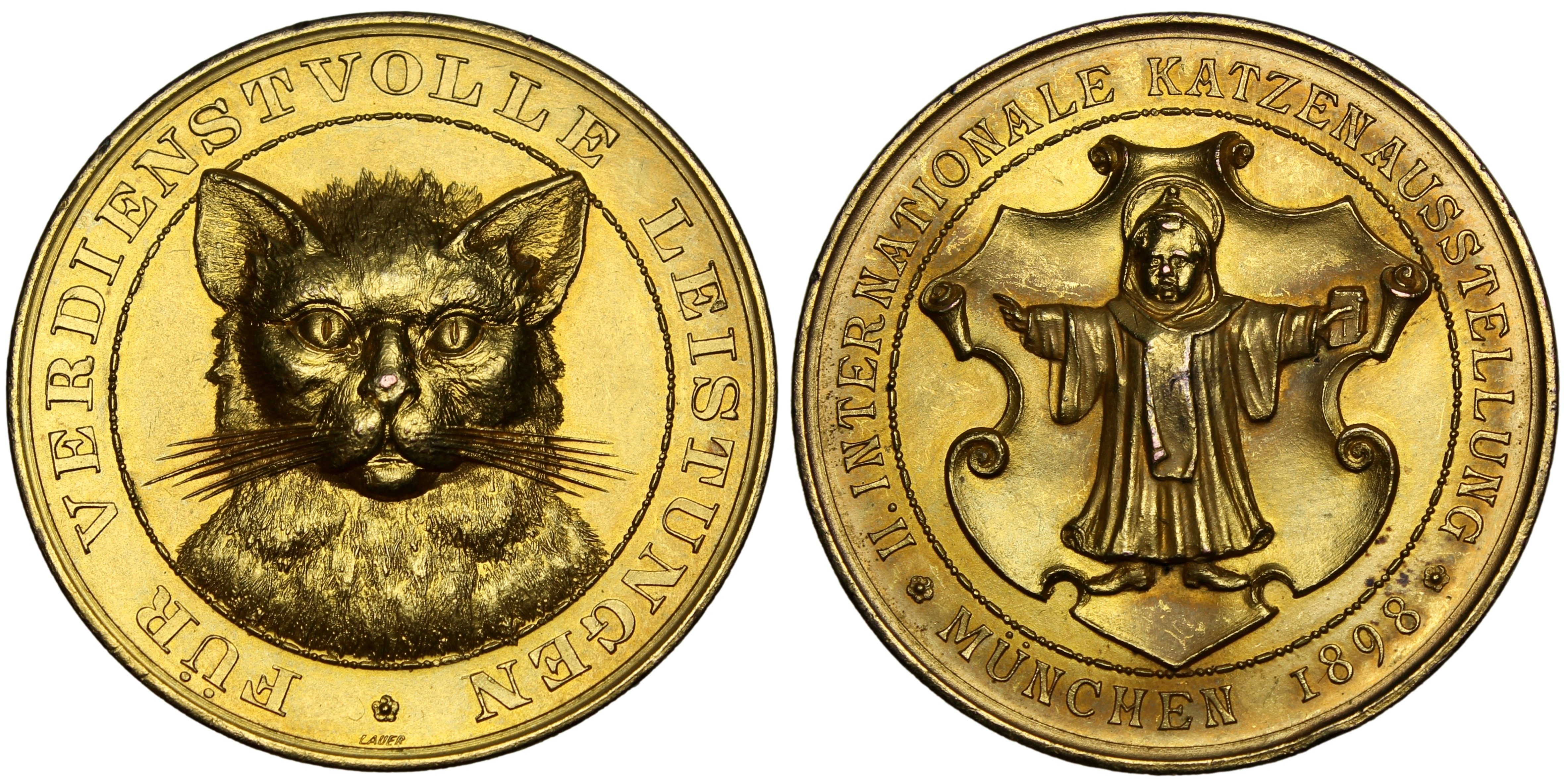 GERMANY. München. Gilt bronze Merit Medal. Issued 1898 for the city's 2nd International Cat Expo. [raw].