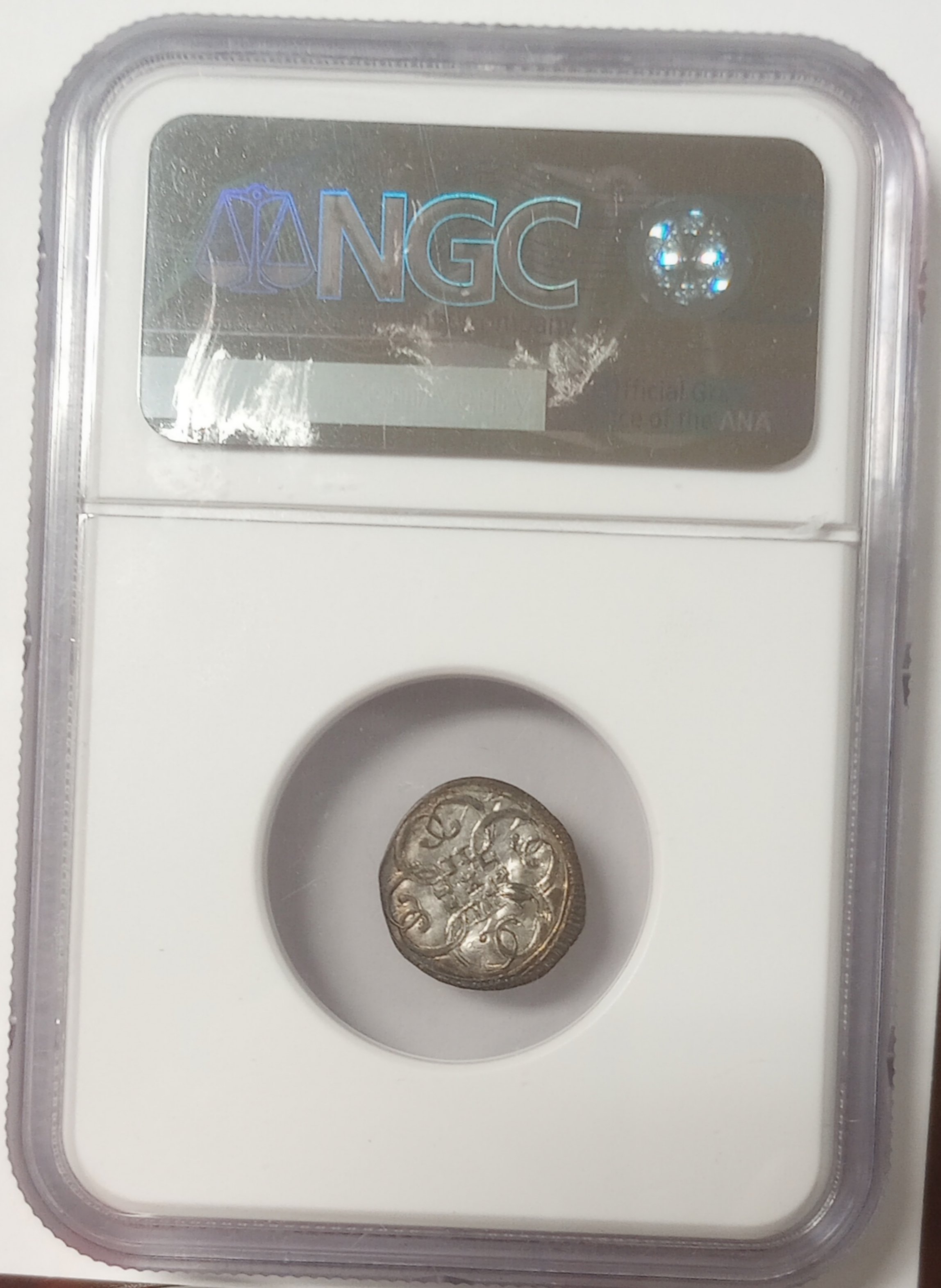Snagged this at a smaller local show on Saturday. My pics are awful, but some really nice blue coloring on the reverse. Will be cracked and sent to to our hosts along with a bunch of other stuff at Baltimore later this week. Here it is in ANACS form.