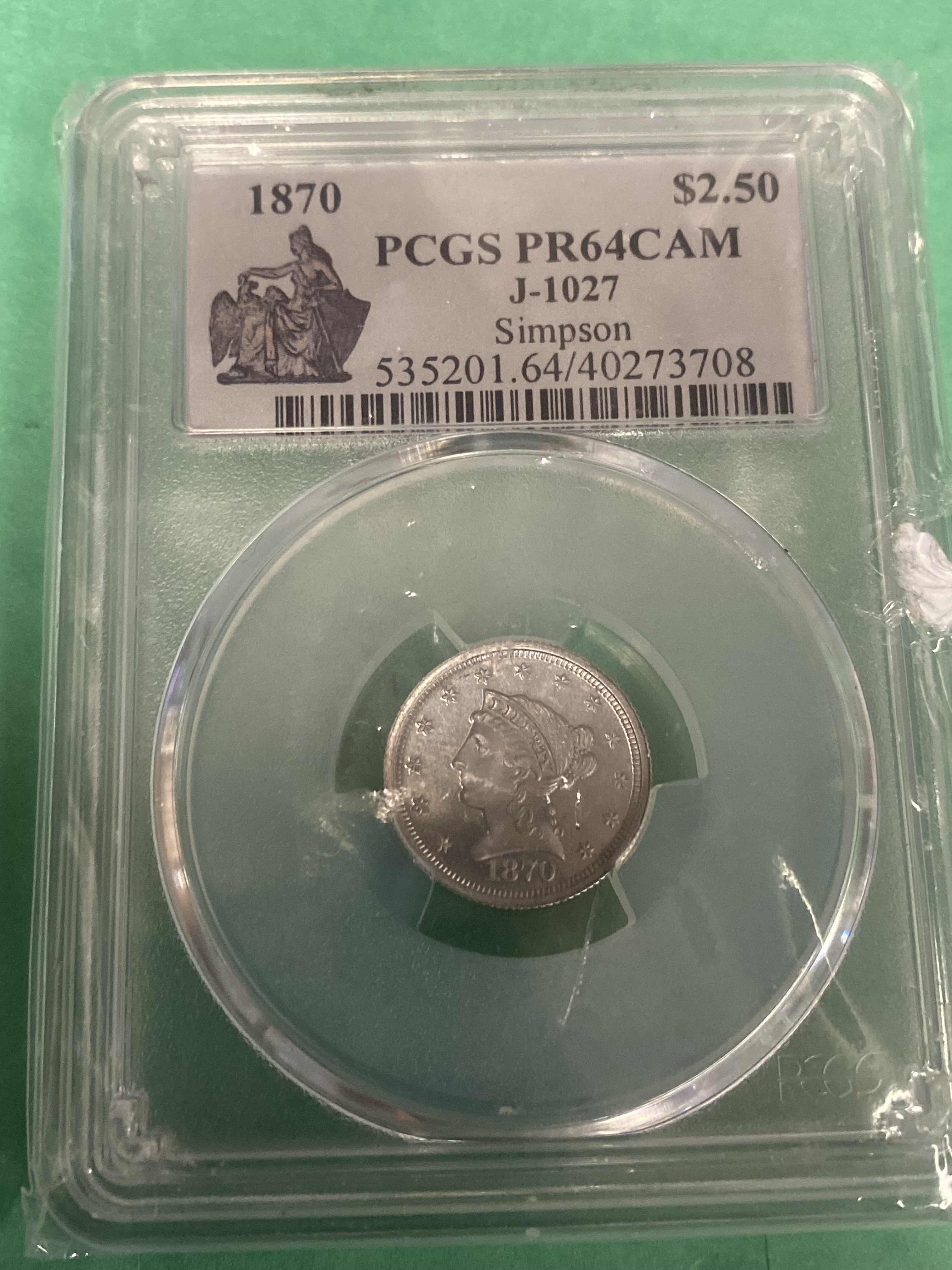 Longacre Seated Princess Dollar, 1870, R-7, PCGS 65 proof, population 3 with one higher. From a Kagin auction sale circa 1974.