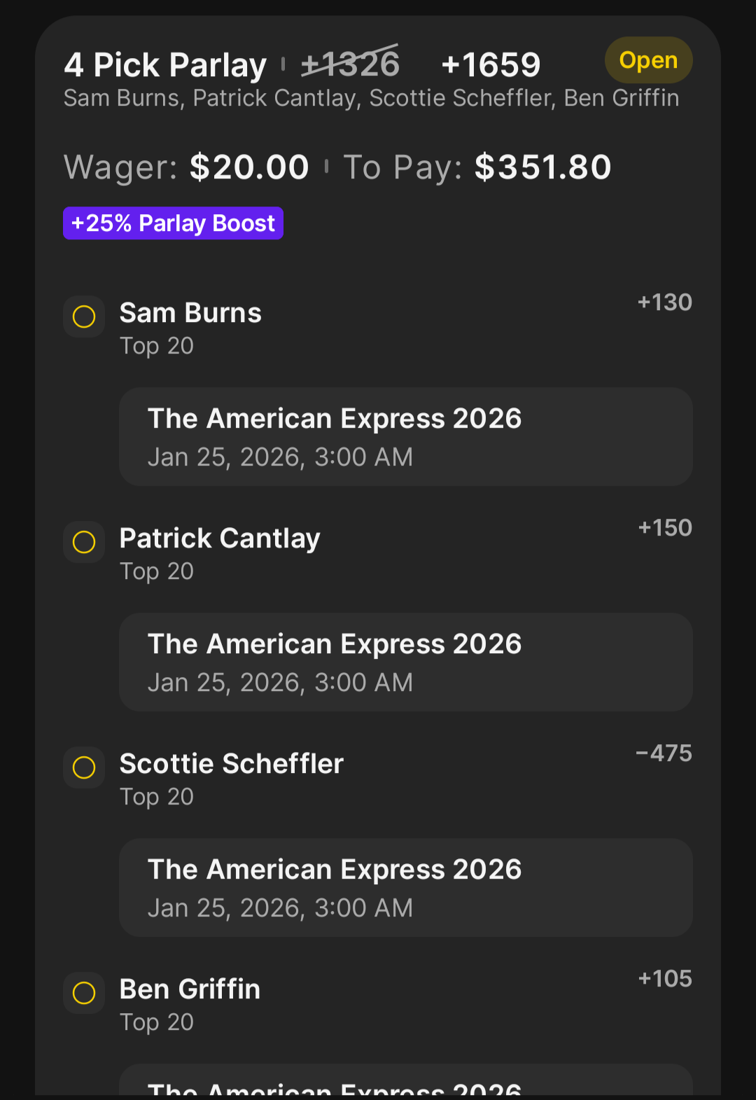 perk if you're doing another 3-dudes T10 parlay, i'd definitely include Scheffler