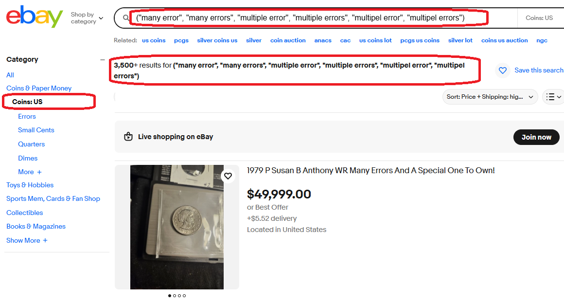 Ebay has become a safe haven for these new sellers offering coins with ridiculous prices that have so called errors like the L in liberty toching the rim and so forth. I had one seller tell me he knows it isn't an error but he was hoping to get lucky.