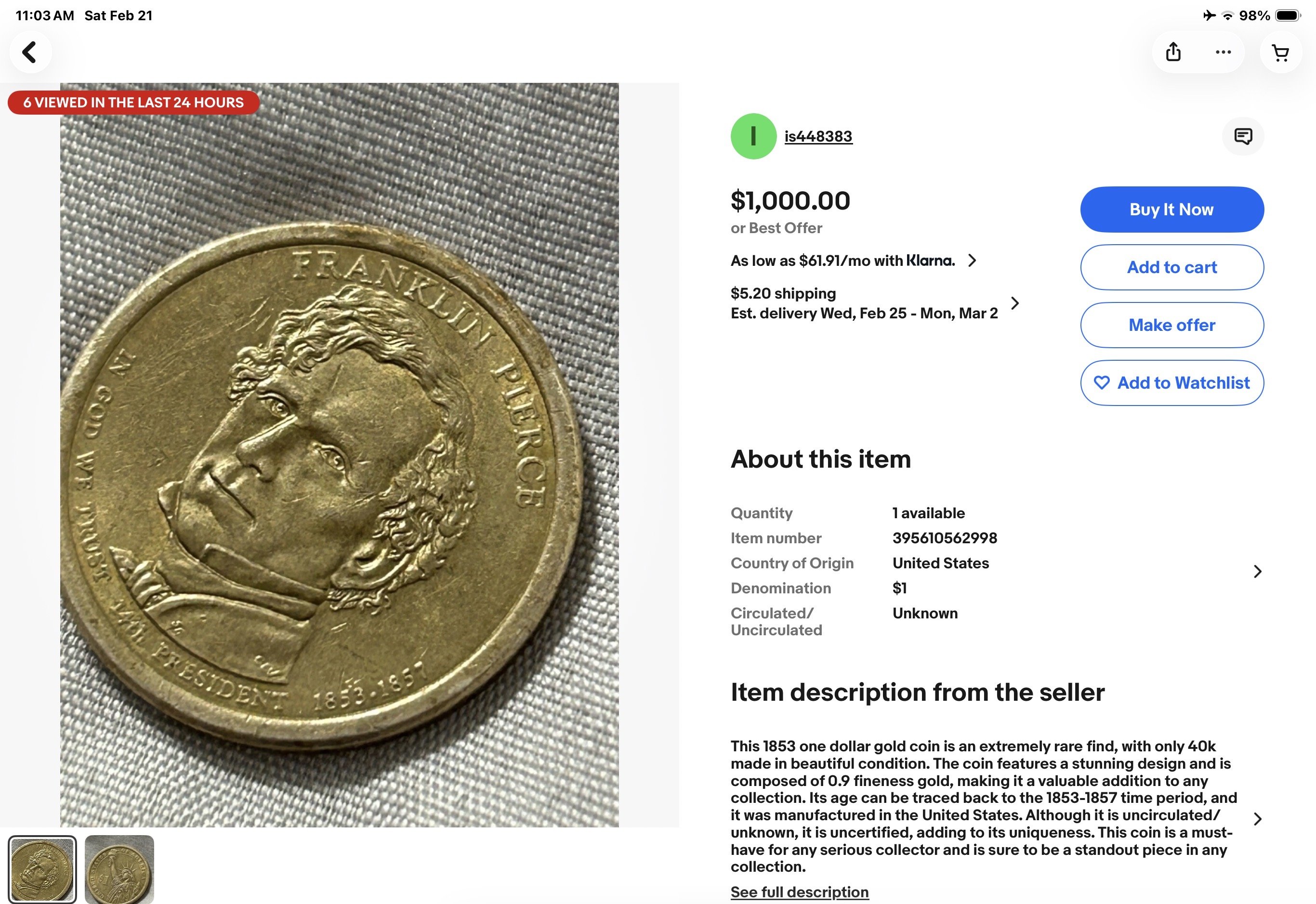 Hmmmmm….thinking about making an offer and sending it in to PCGS for grading if I win it. 🤪