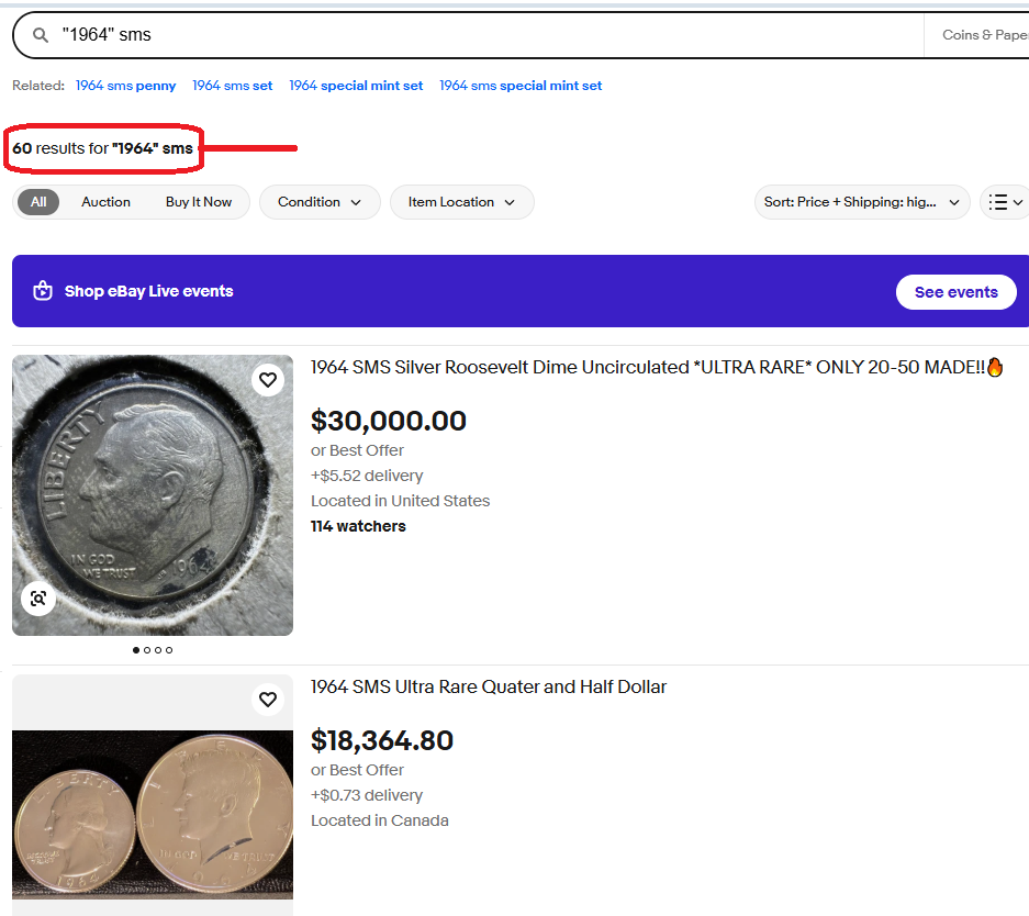 (there are some legit listings - "1964-1970 mint sets and SMS" - stuff like that)