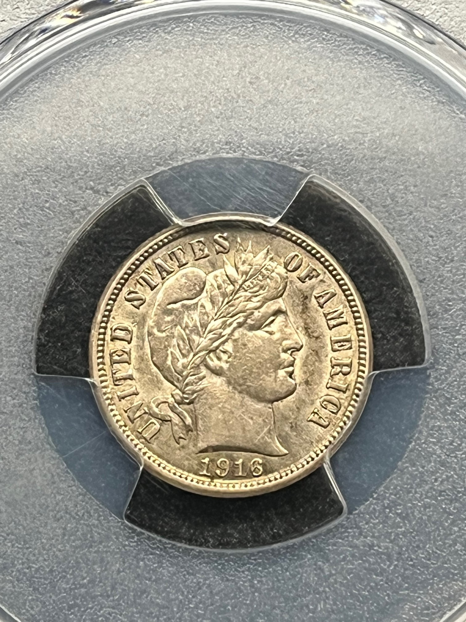 1916 10C Barber B&R: AU50. PCGS: AU Detail Cleaned - Womp womp womp