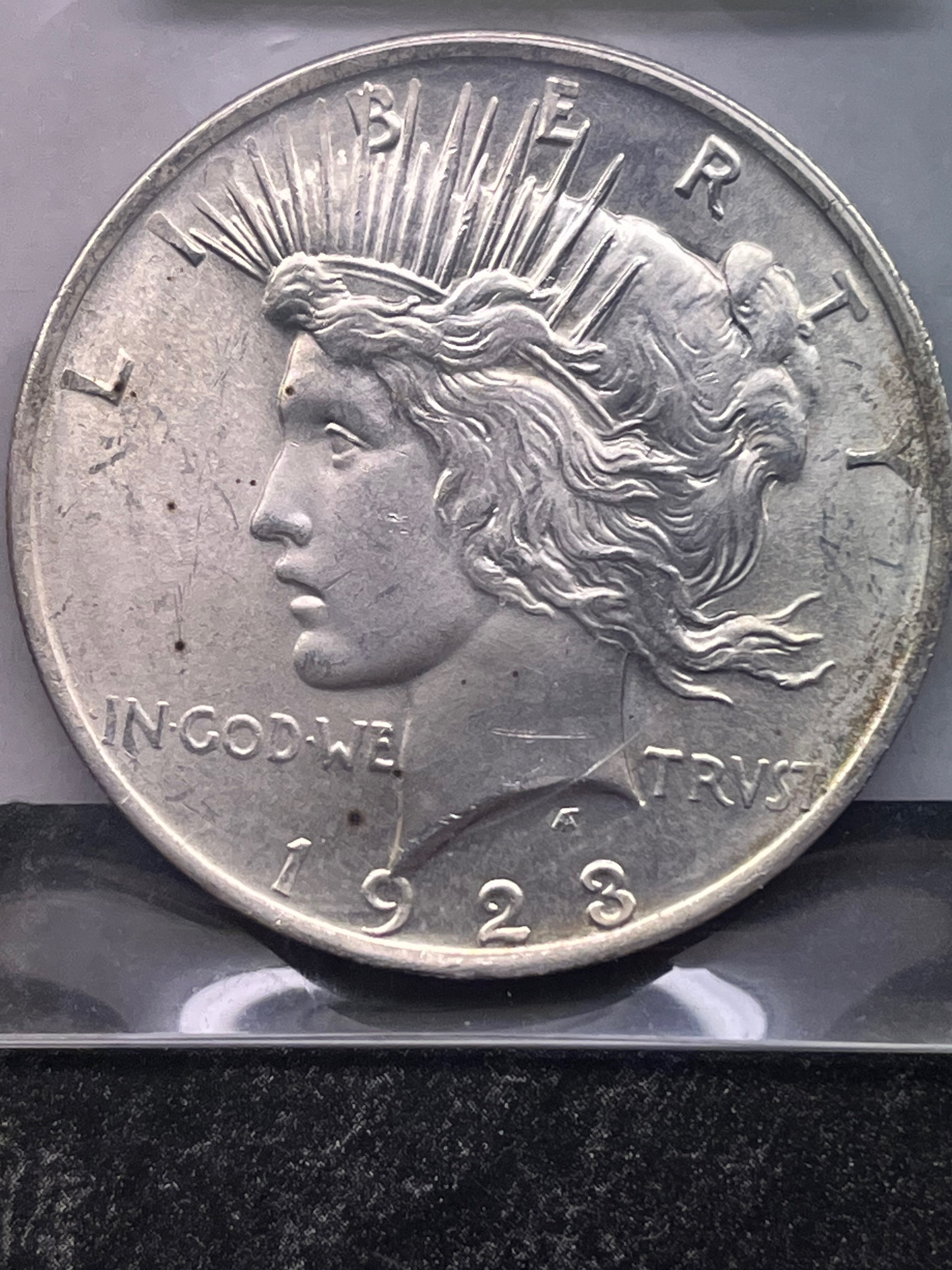 Here are some pics. Best I could do. As a bonus I've also included the ungraded 1923 1$: