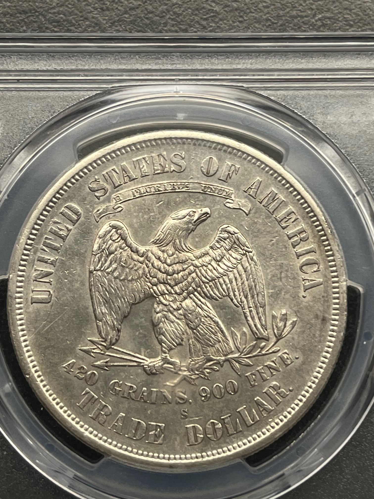 1876-S $1 Trade B&R: AU50. PCGS: AU Detail Cleaned - Womp womp womp