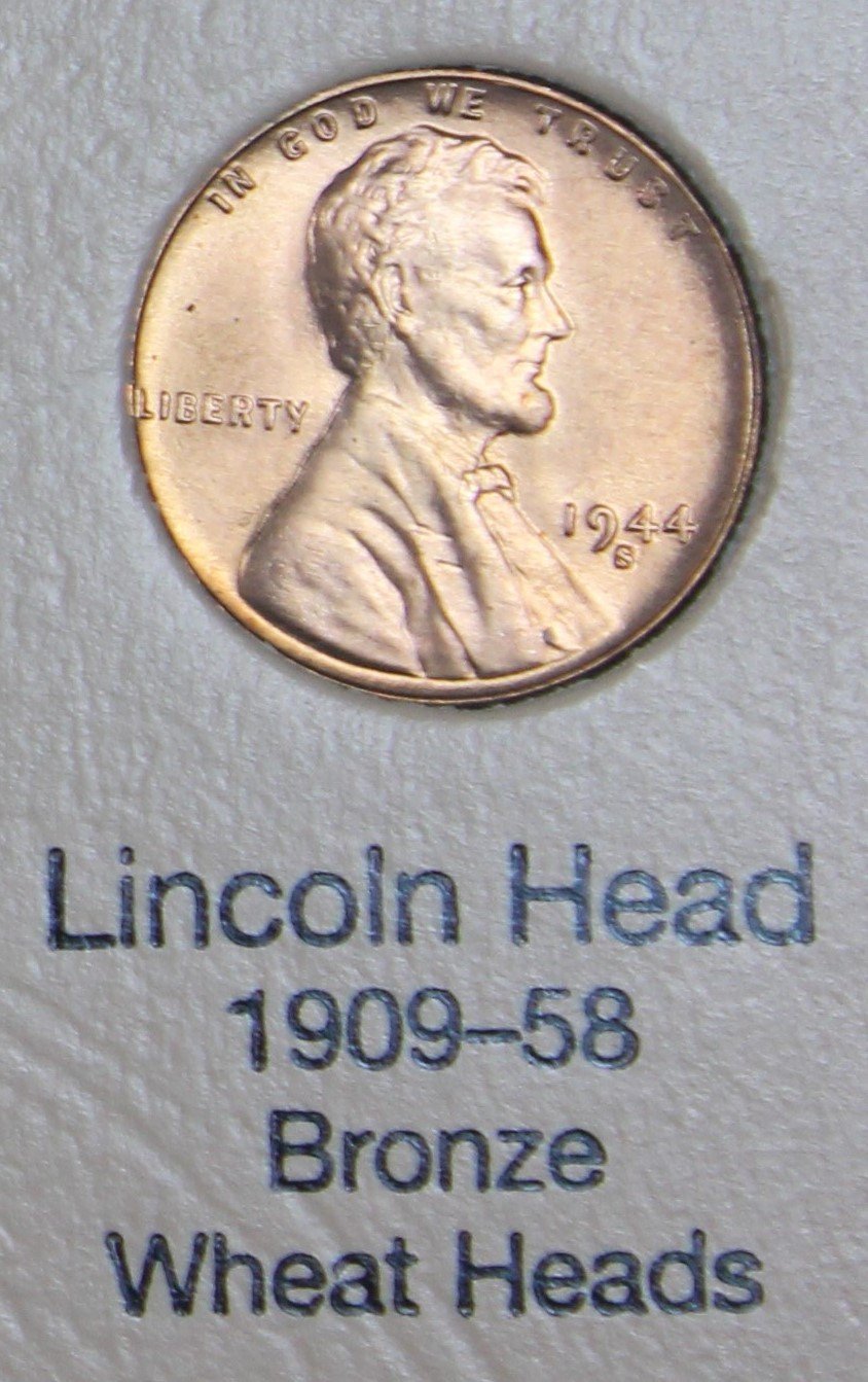 So for today, we continue with the original Lincoln set design, bronze, with the wheat heads (“ears” or “stalks”) on the reverse. But DON’T show a “Steel” cent, as that will be a separate Type, for Tuesday. However, if you want, you CAN show a 1909 Lincoln cent, from any mint, as long as it doesn’t have VDB on the lower reverse!