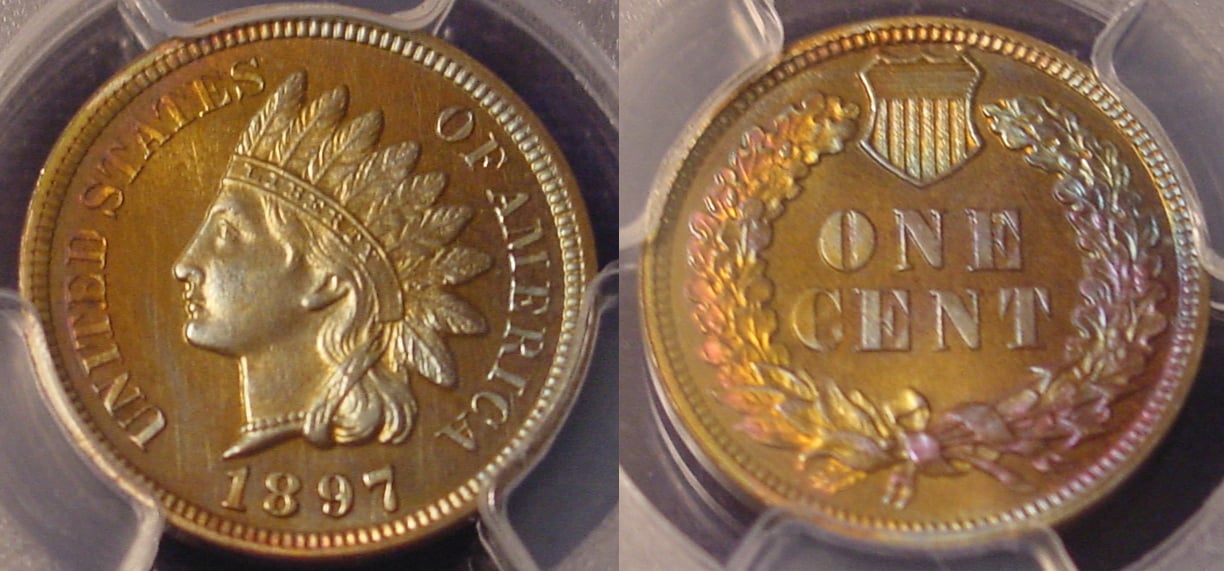 This 1897 cent is the currently the piece I have for my type set. It is PCGS graded PR-66 Brown.