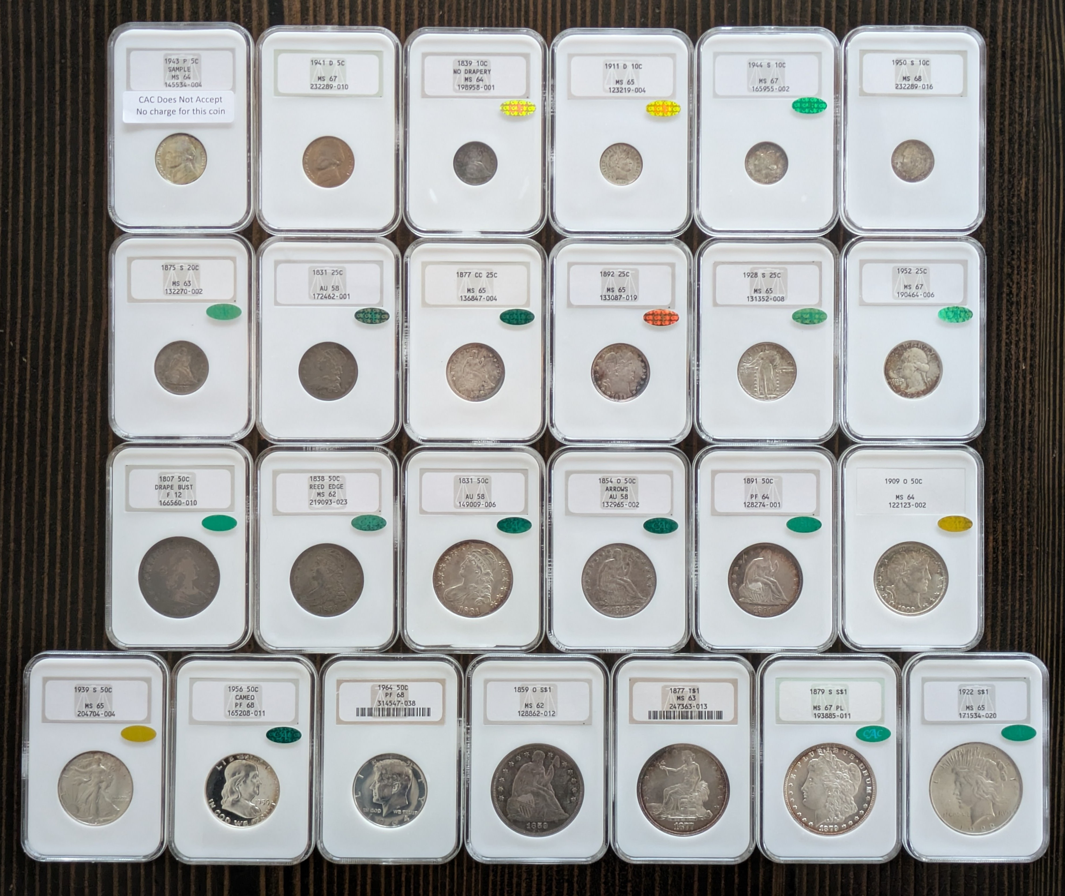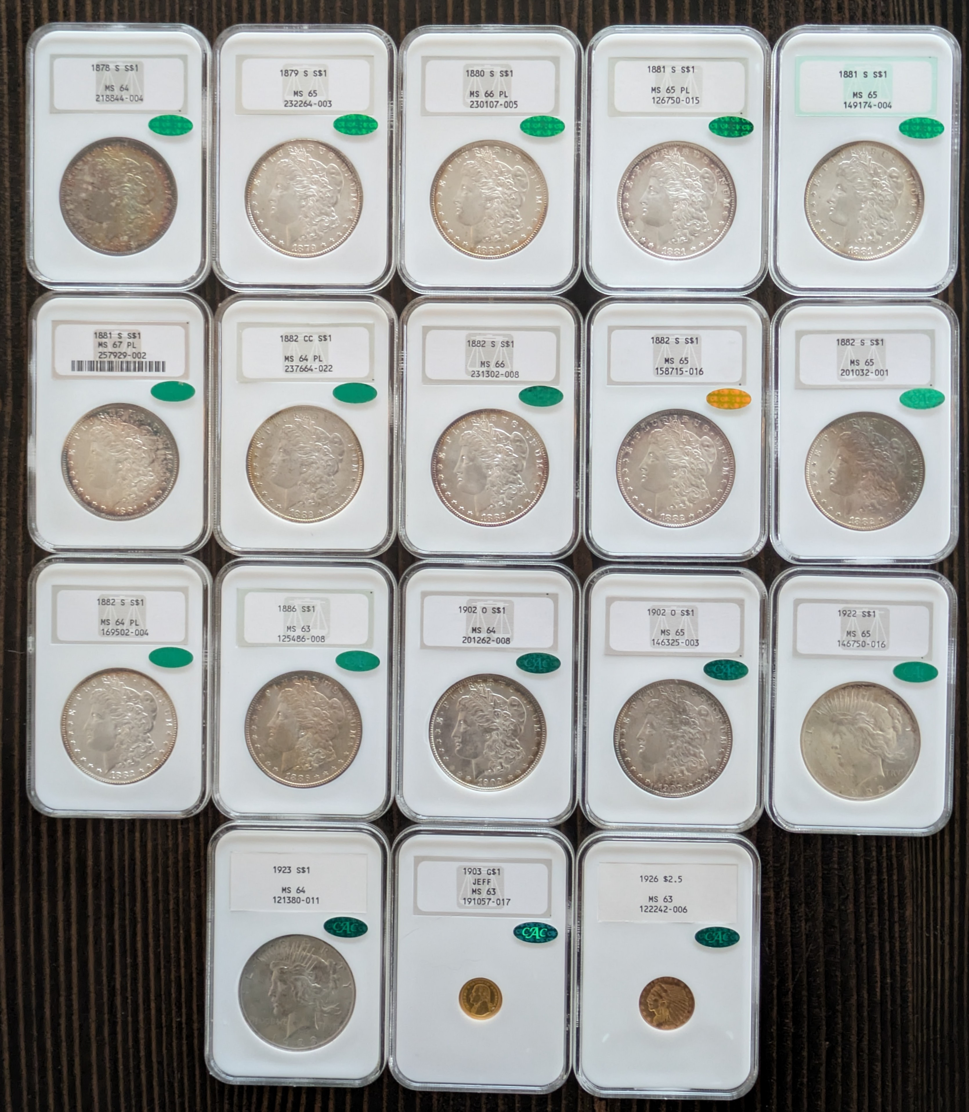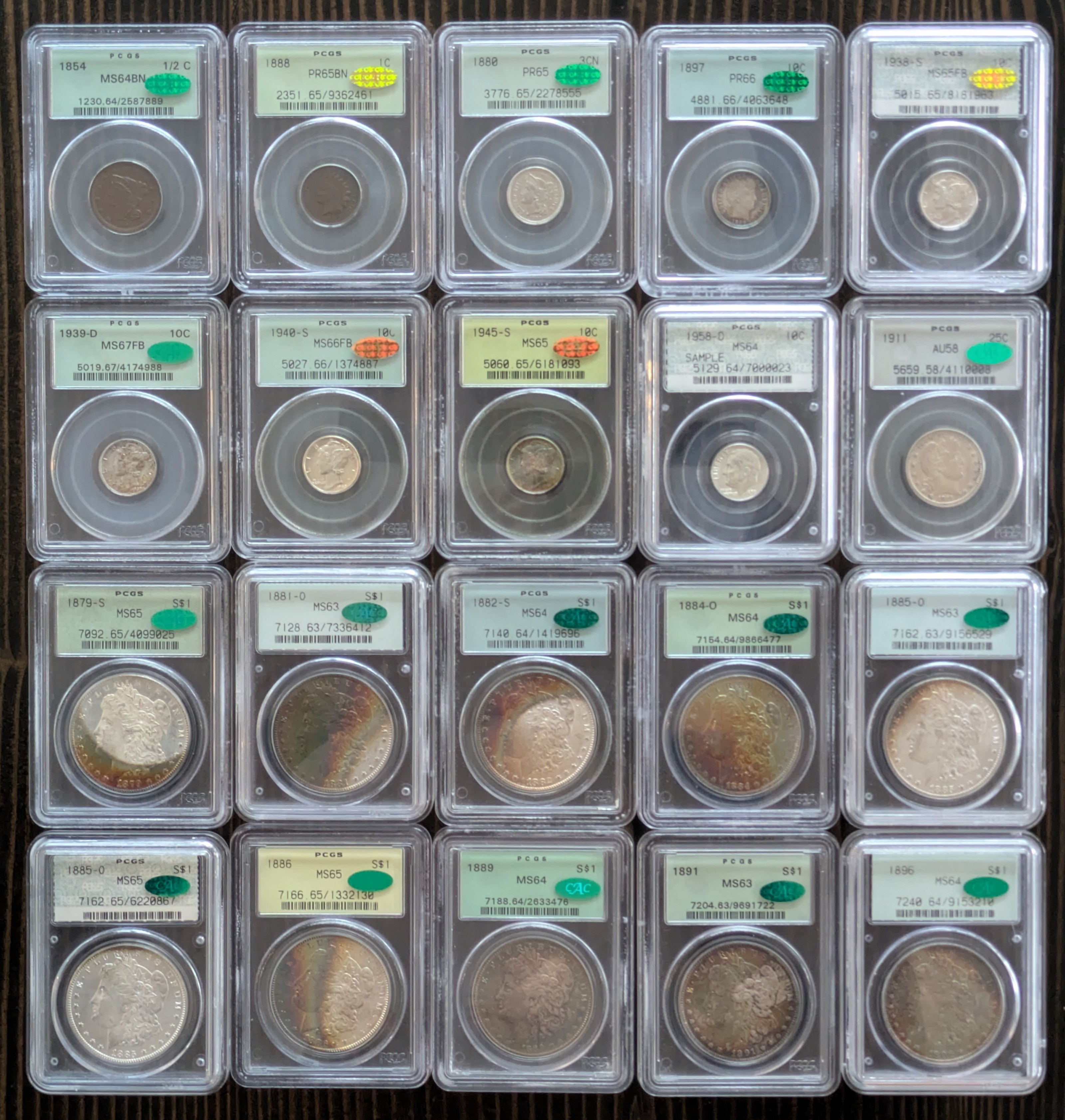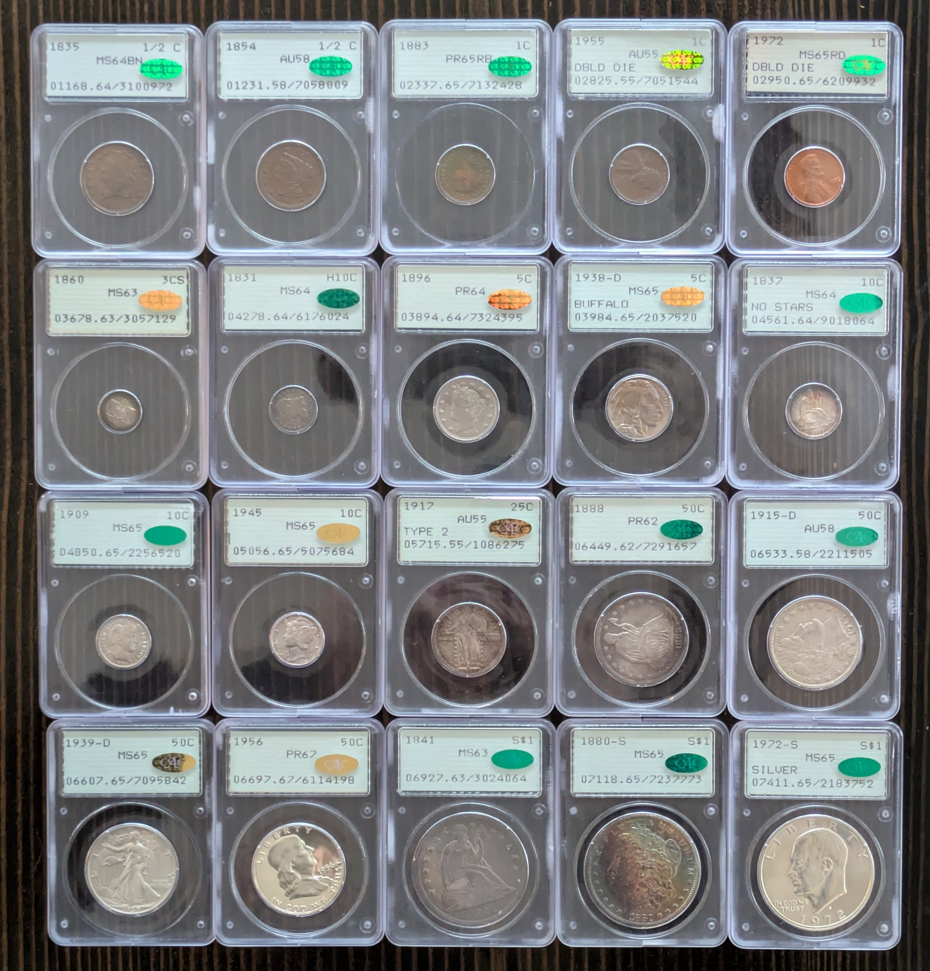 I've seen these in hand, incredible group. Coins, slabs, stickers, the full package.