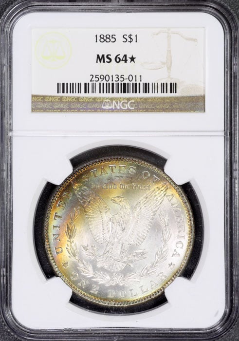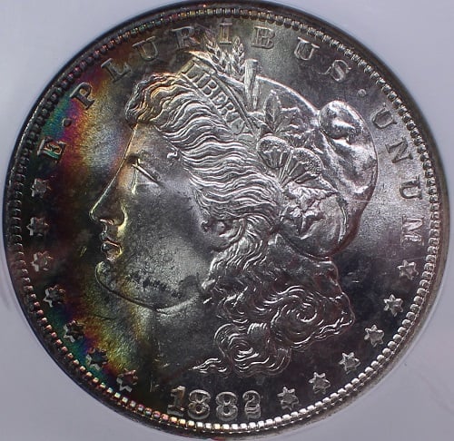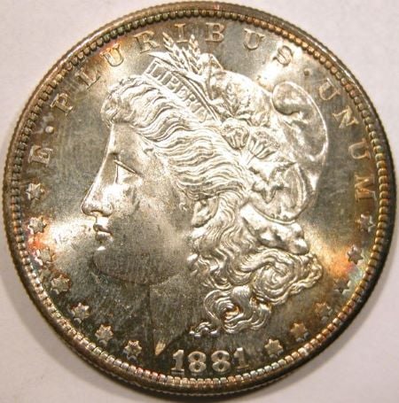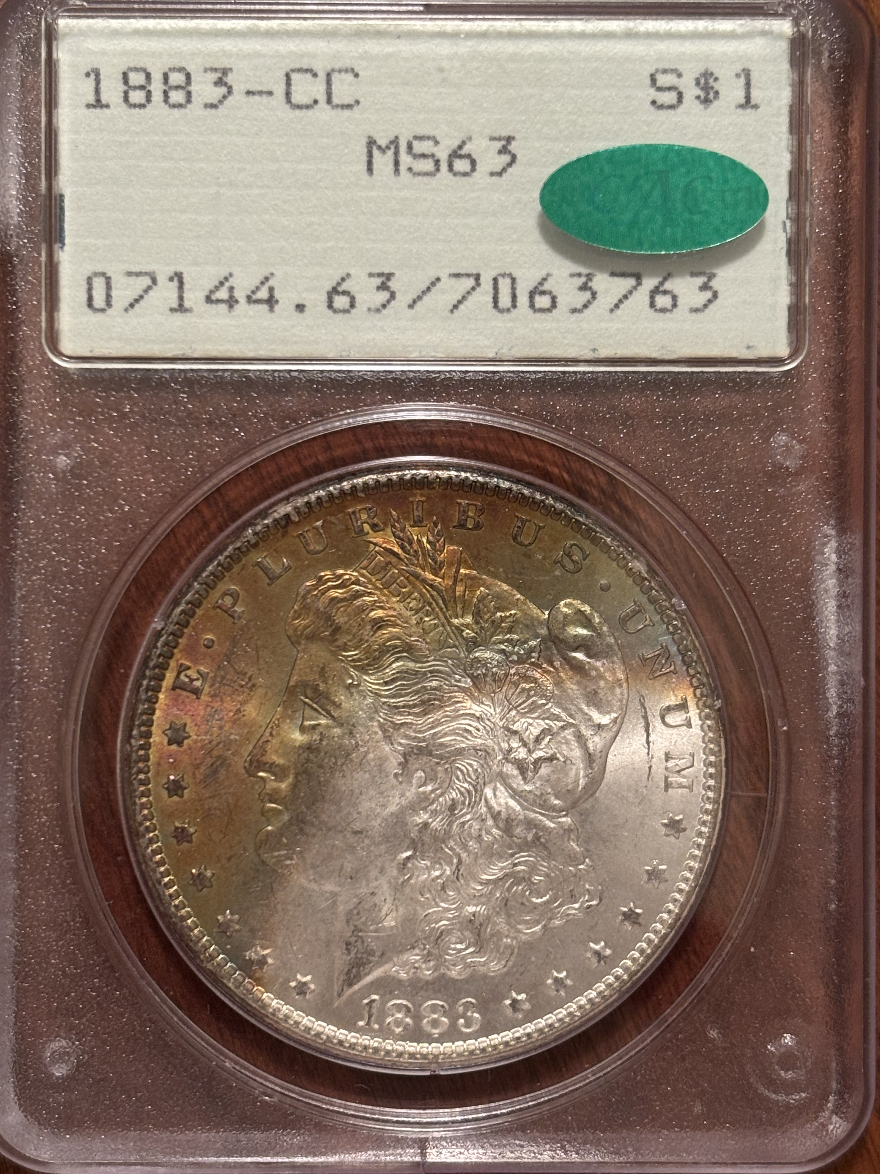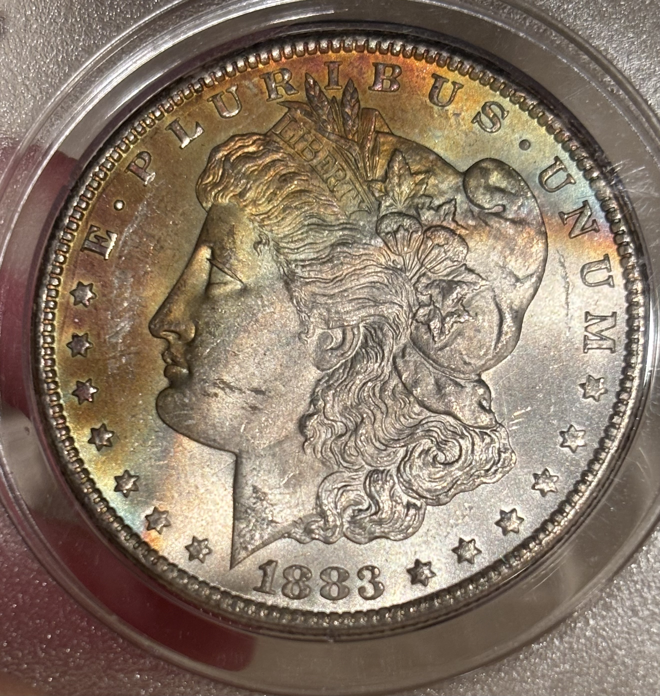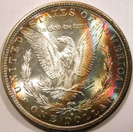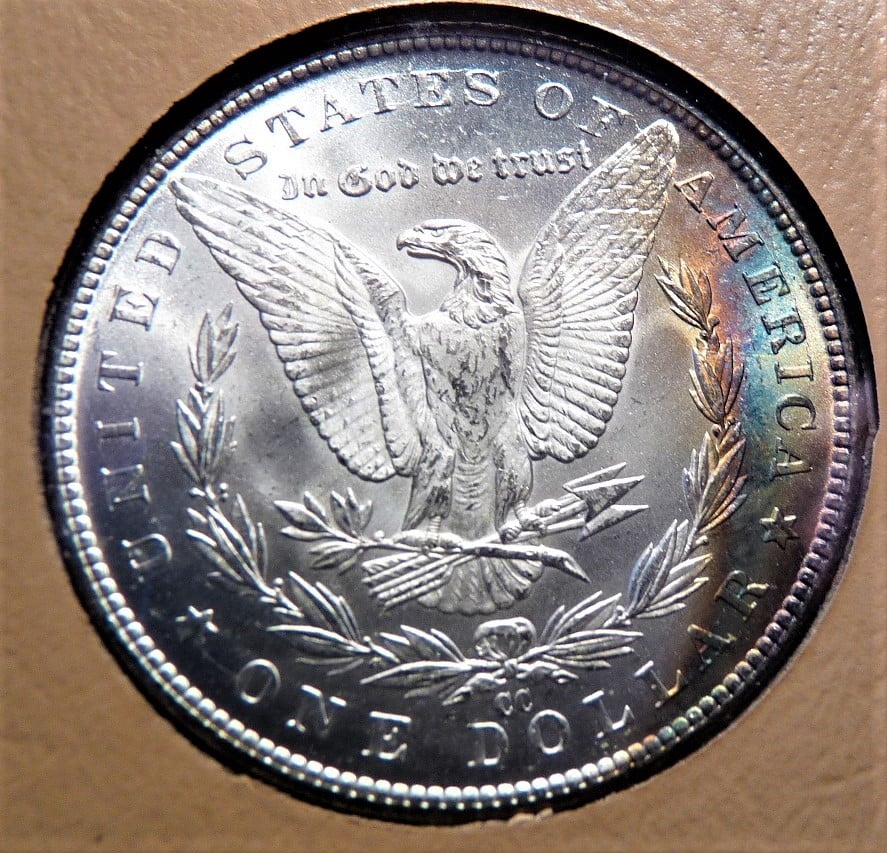 First crescent toned coin for me, 1883-CC Morgan