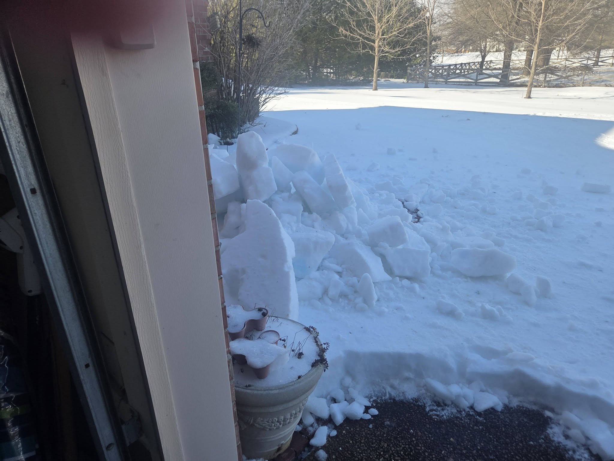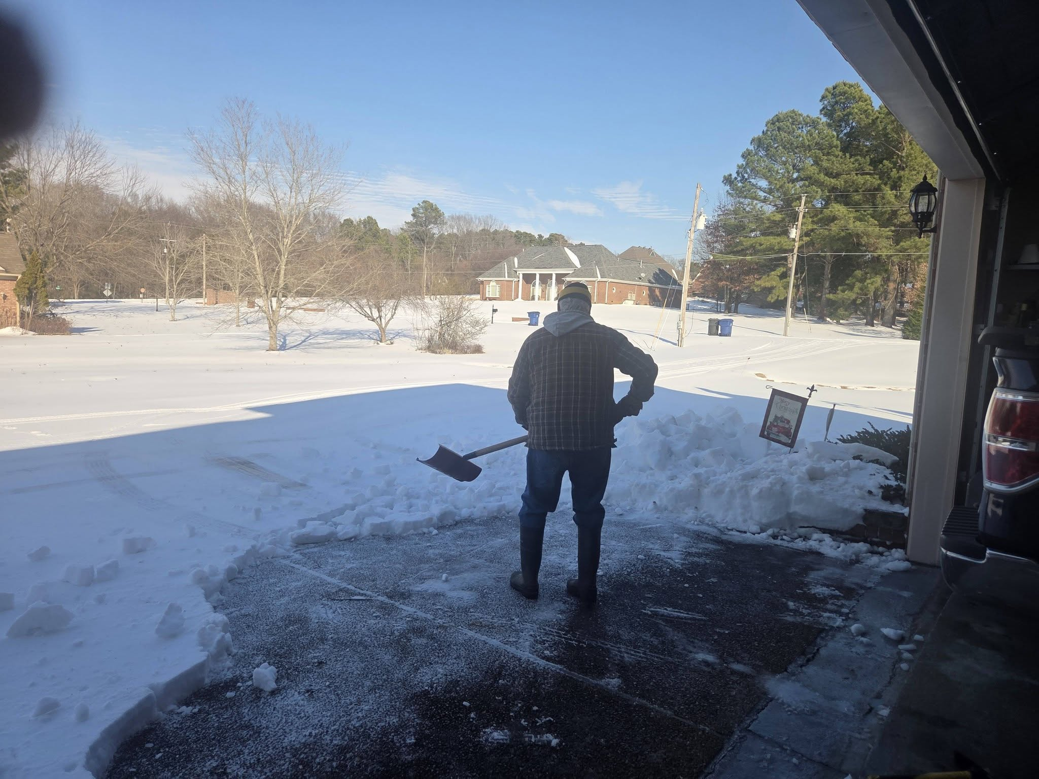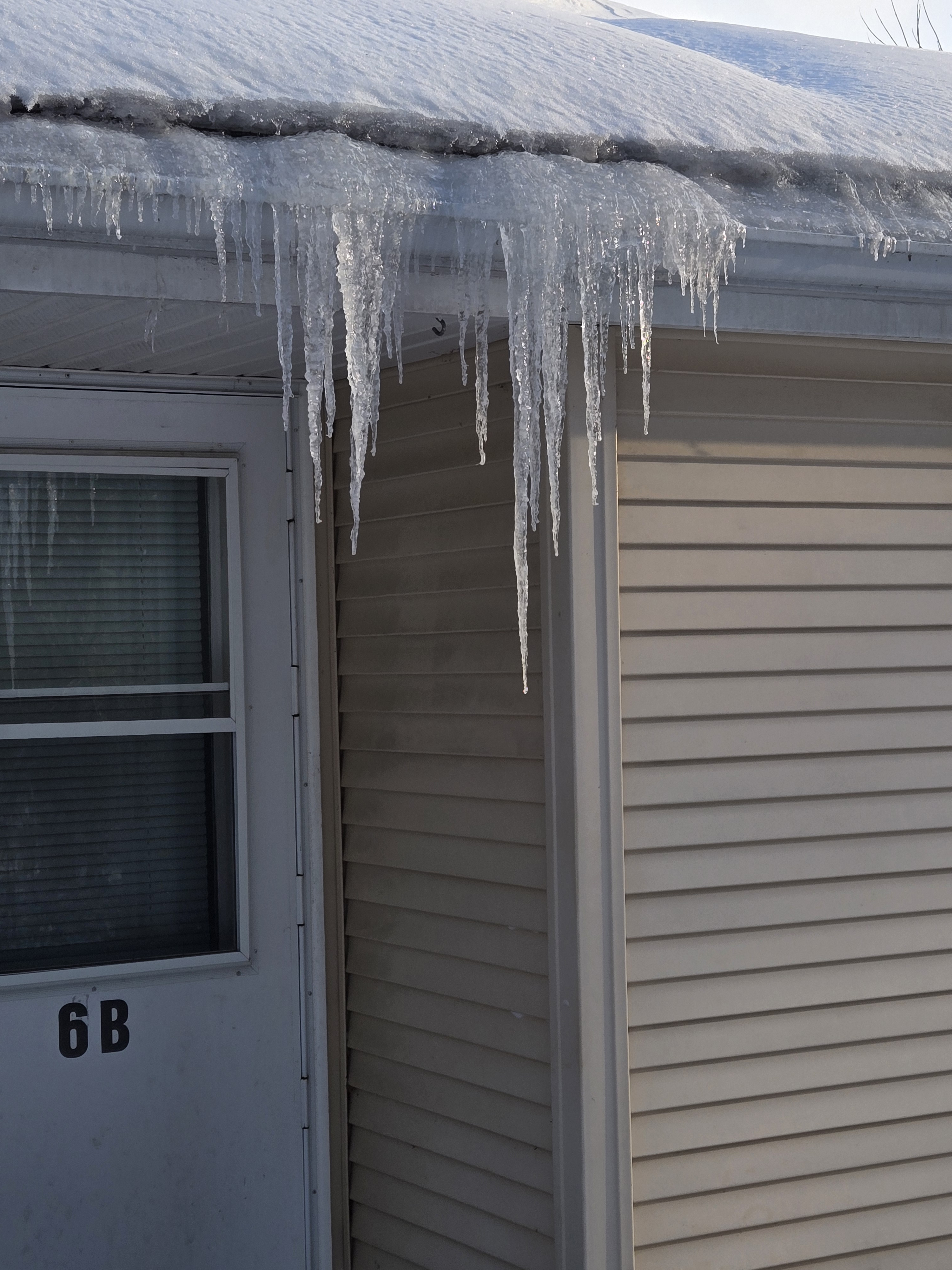 The icicles got knocked down a few times already and salt/sanded area