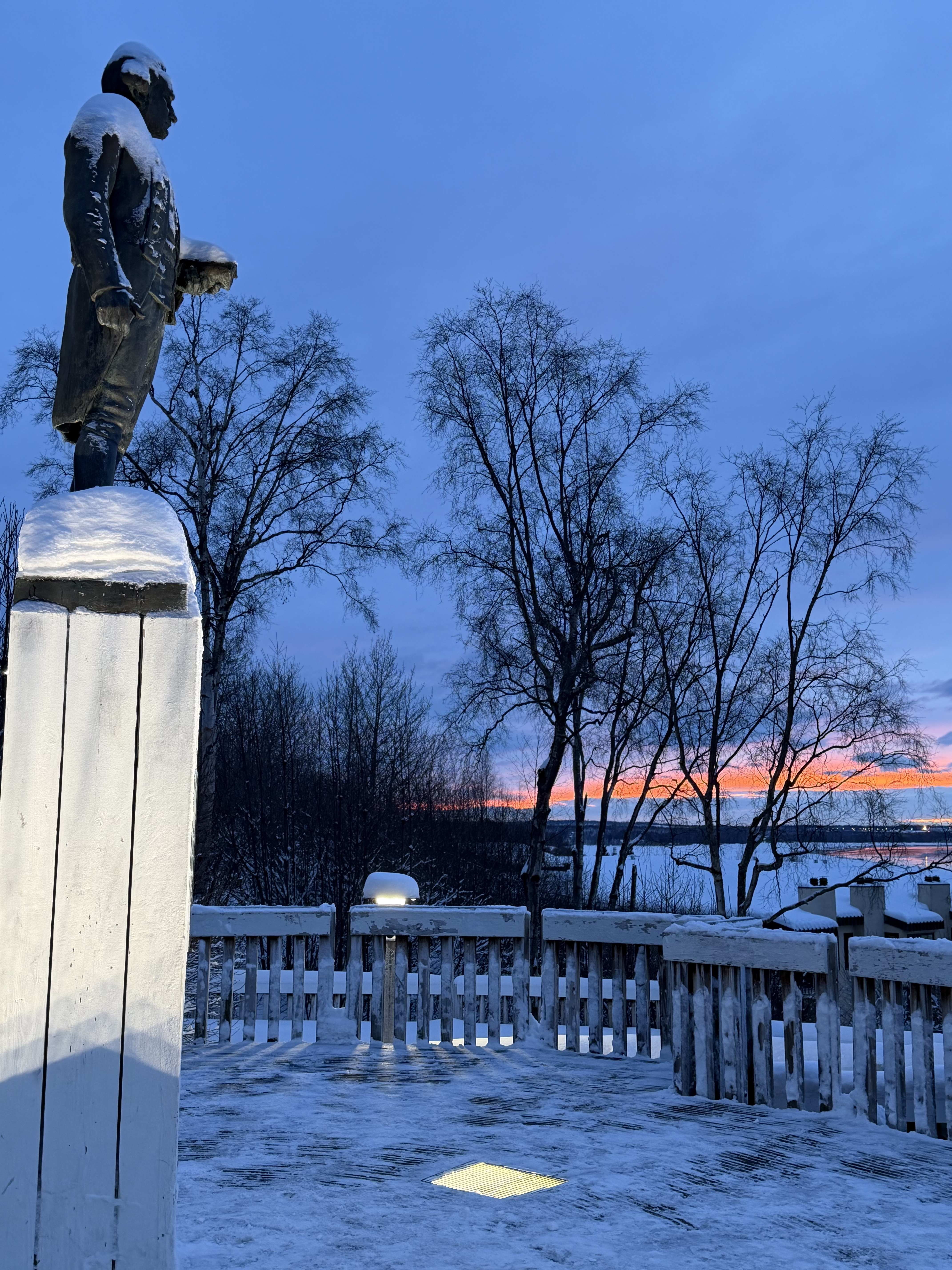 Captain Cook as his statue overlooks Alaska's Cook Inlet named after him: