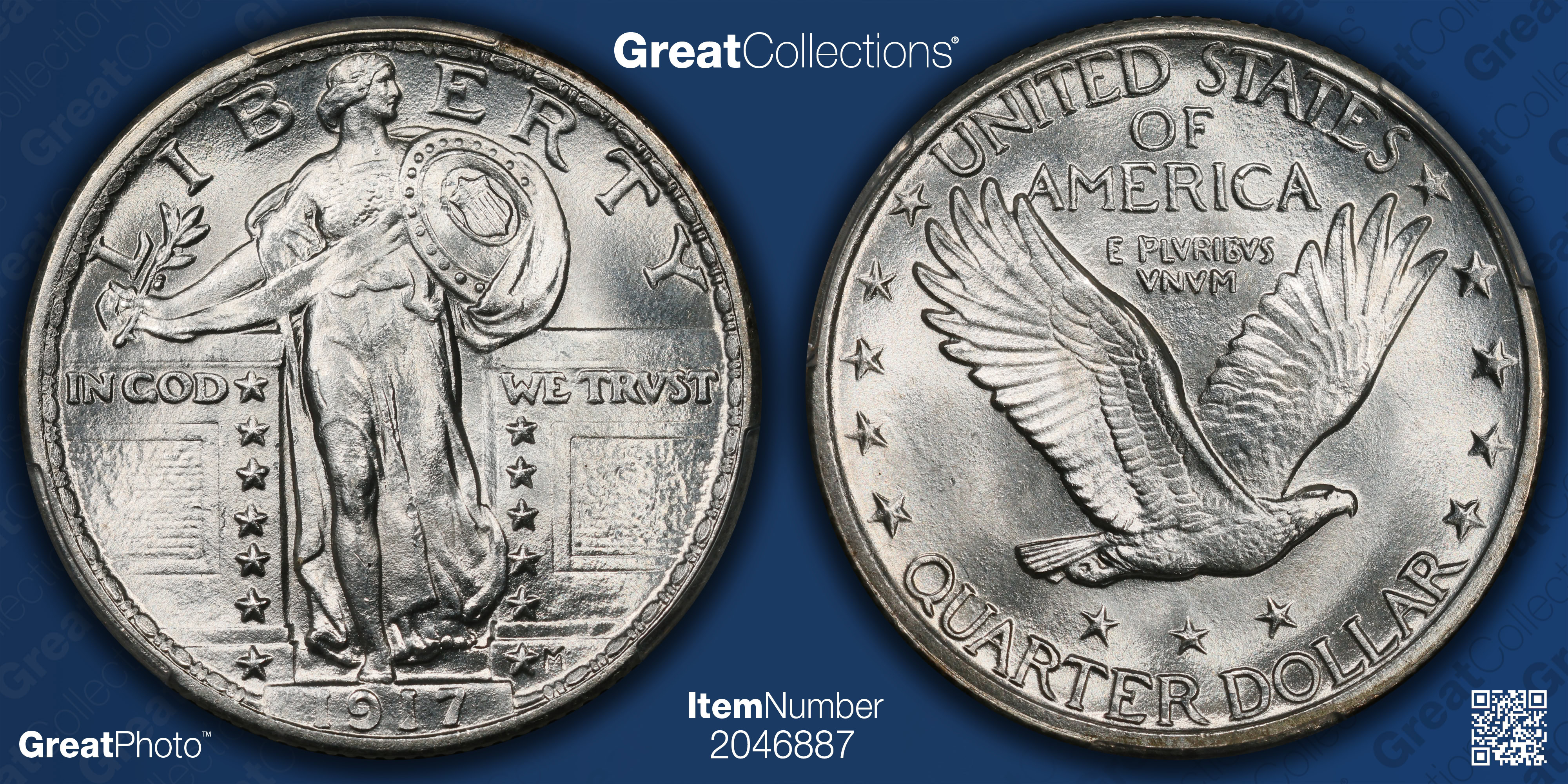 SOLD on auction at Great Collections for $4,781 with the bp ($4,250 hammer) is my 1917 Standing Lib Quarter, Type 2, graded MS65FH by PCGS with a CAC sticker.