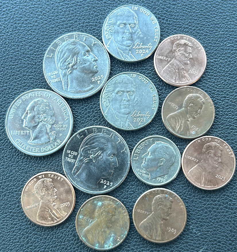 • I haven't dumped them yet. I just add coins every now and then so they are mixed up with the coins I dump when my bowls are full, about 300 dollars worth. But I check before I leave because sometimes putting coins through a second or third time they go through. I haven't done any steel cents yet. I opened an original bank wrapped half roll so I will add a couple of those.