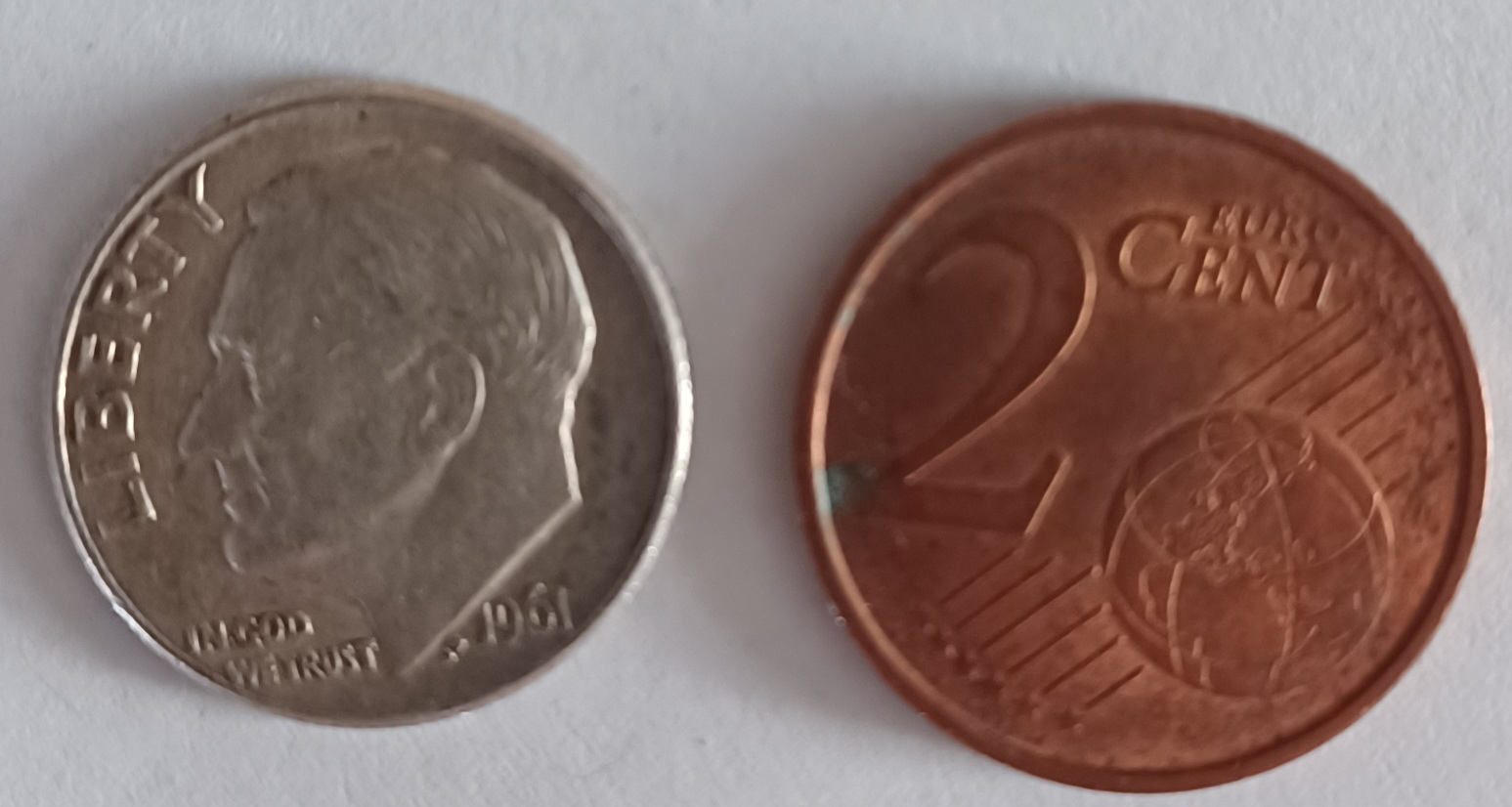 A modern zinc penny and a white dime (1946-D).