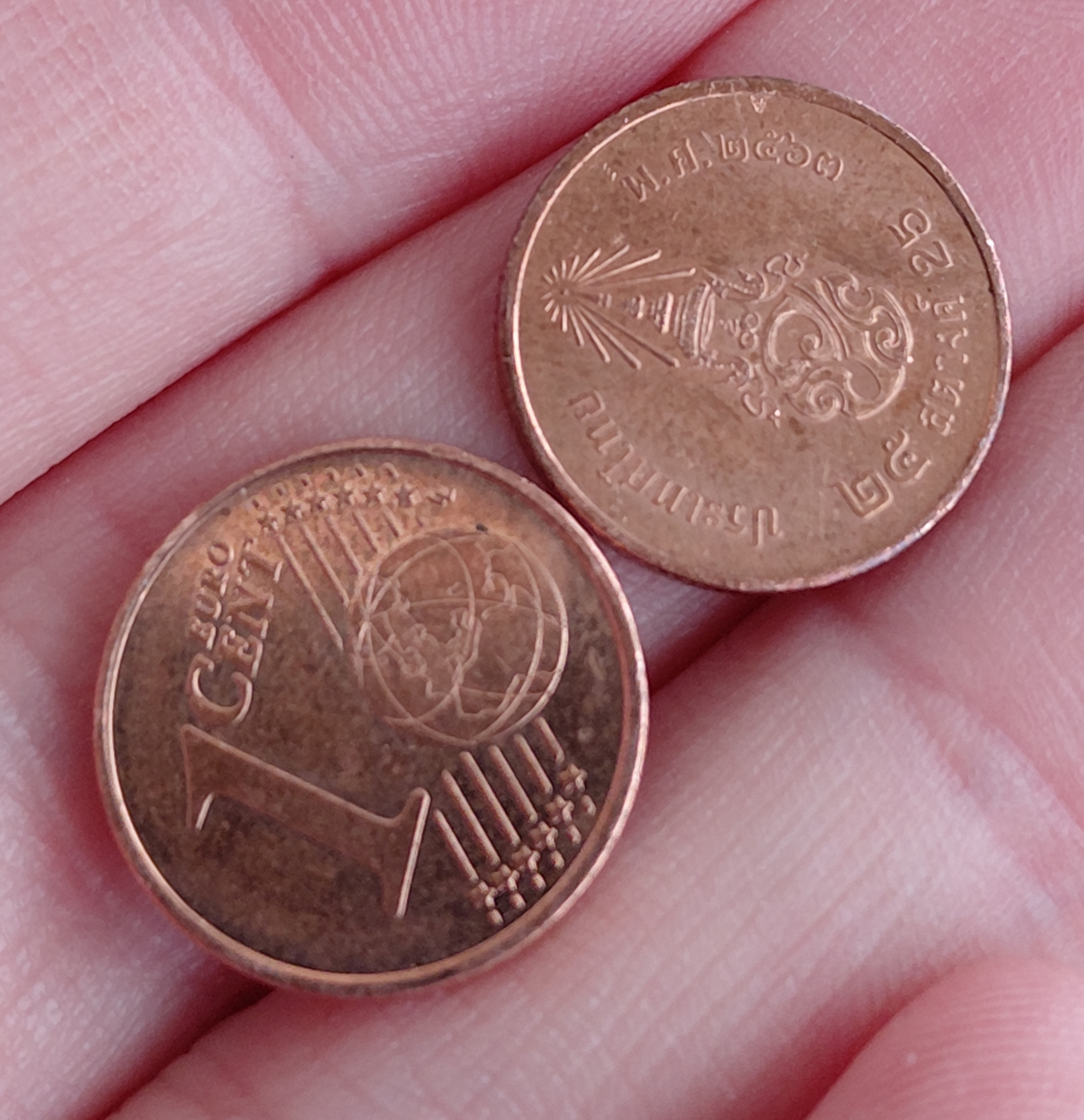Today I found 4,82€ on my way into the shop. On the way out, there was another spendable Cent in the return tray, and a Thai 25 Satang aswell.