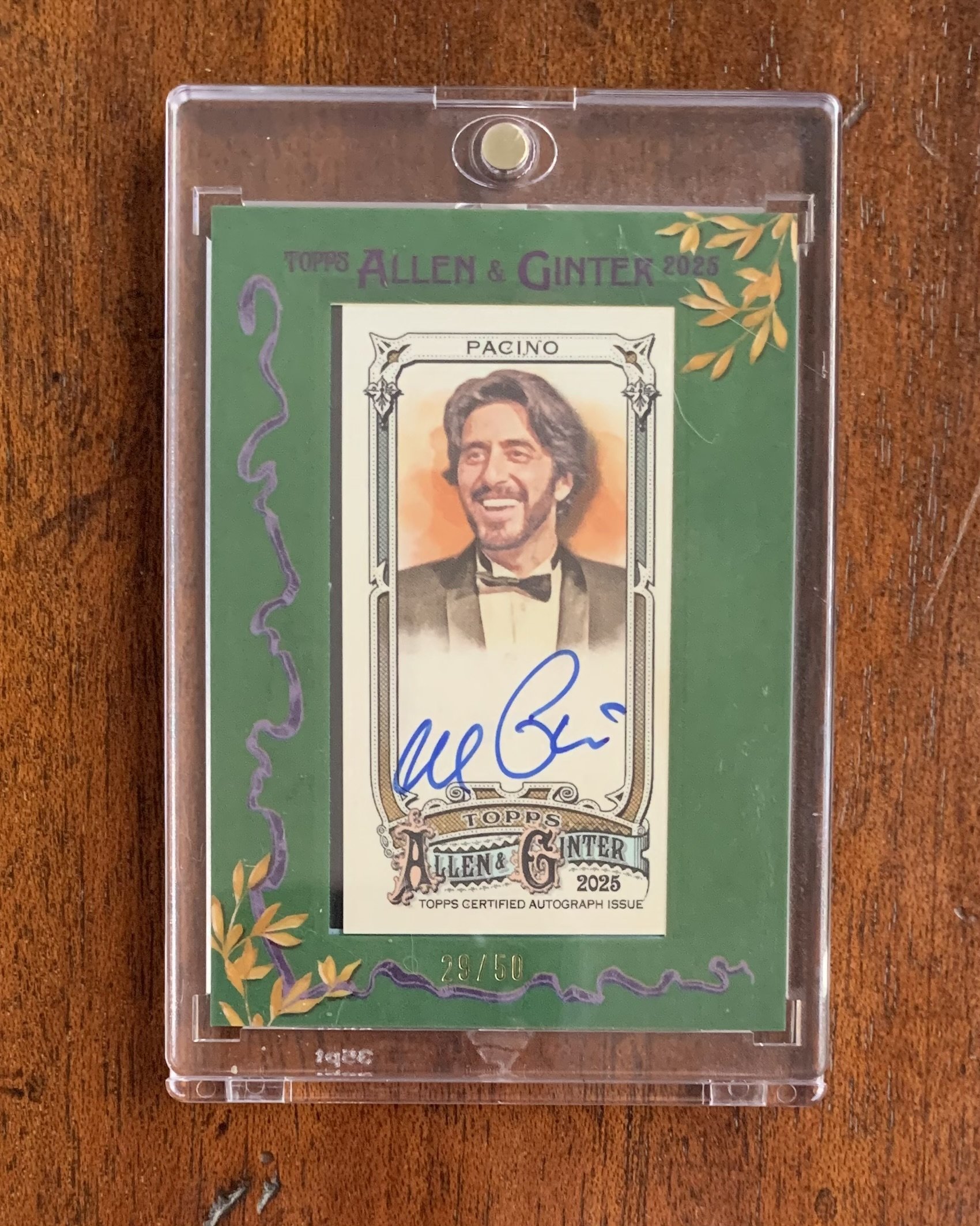 Cool Al Pacino auto! When I buy Allen & Ginter packs, I usually pull a sandwich, a dog, or a comedian I've never heard of.