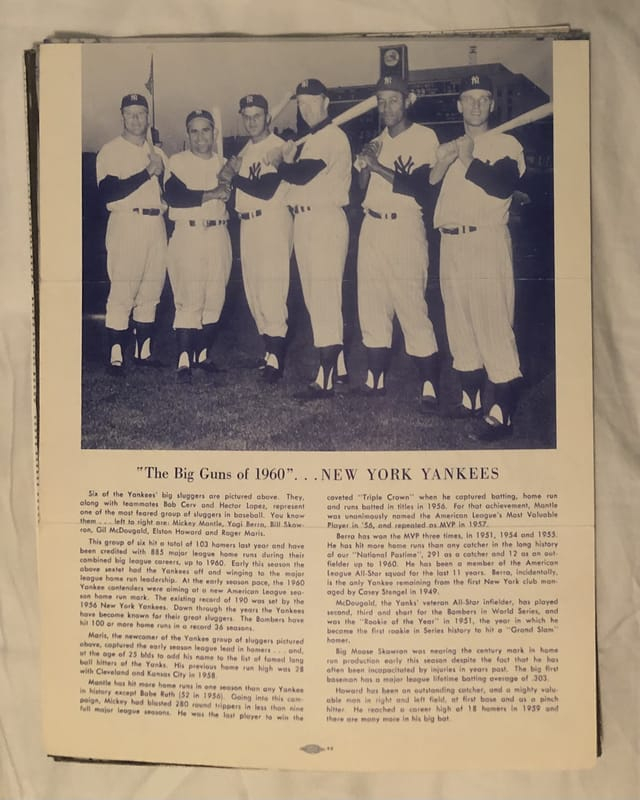 Back in 1969, this obscure set was probably obtained through correspondence with the artist, Rocco Malanga, who would send back four 3 card panels designed to be cut into the 12 card set. They may have been distributed another way, too (not sure), but they’re baseball card sized and feature hand sketches of prominent Yankees. These sketches also appeared in some Yankees profile pages in the 1968-69 Yearbooks. Somehow, they’re in the Standard Catalog.