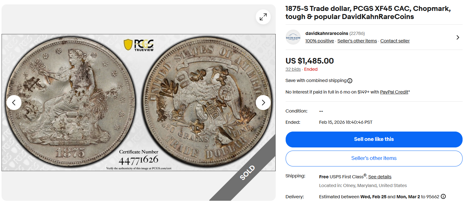 It's also like this in the chopped trade dollar (and also non-chopped) world.
