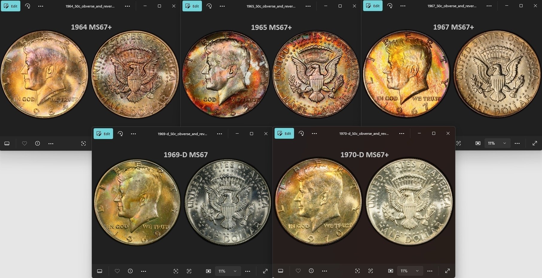 For my raw ones, I collect by the series, I have Walkers to the early Kennedys in this album, the early date walkers are good to fine and the late date Walkers to Kennedys are all BU