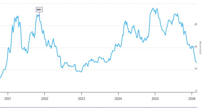 this chart is interesting ... its a chart of BTC priced in Gold ounces