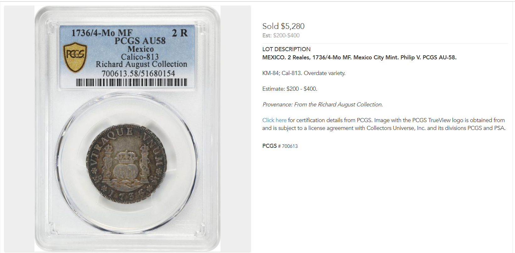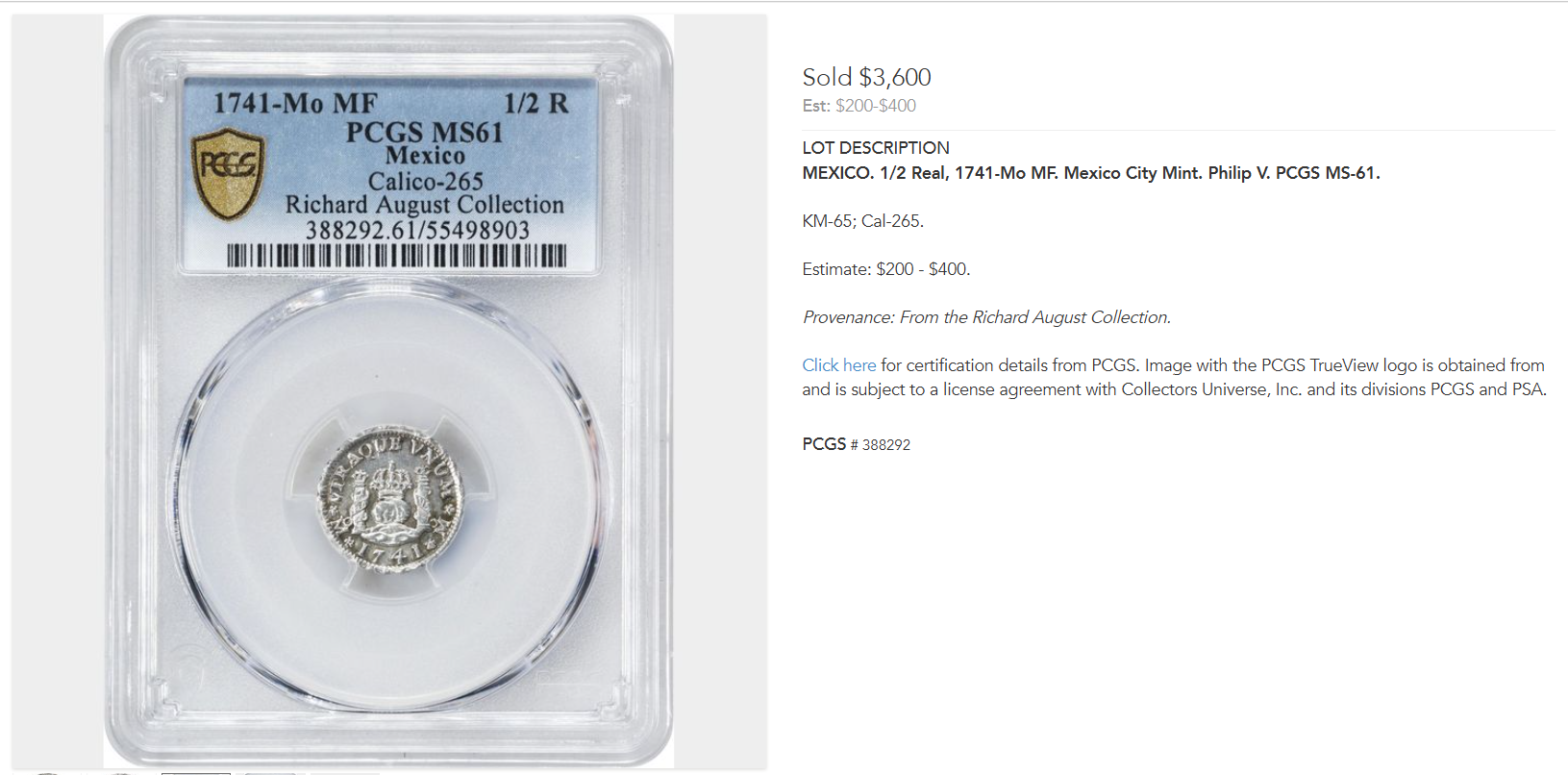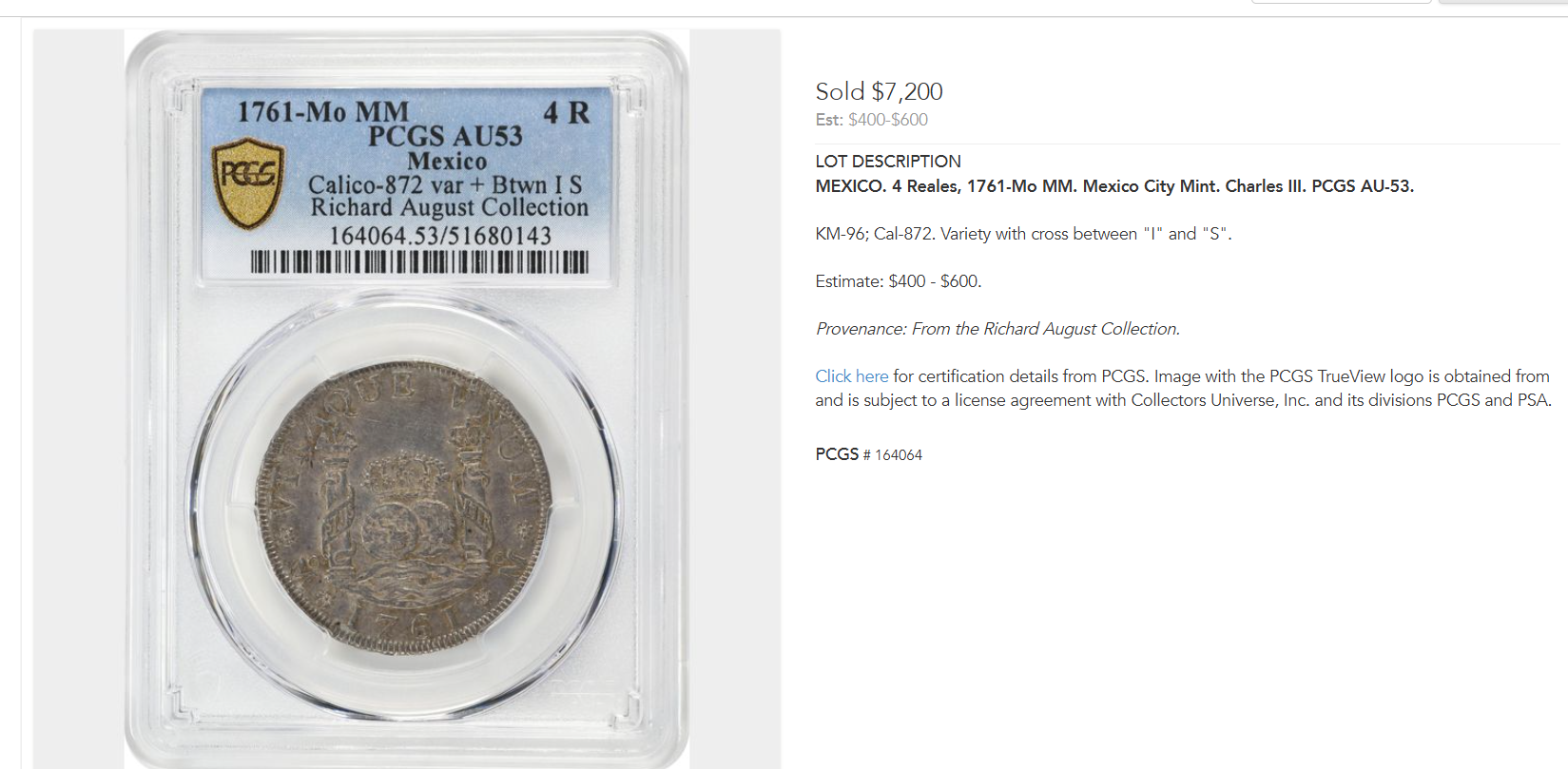 I think this is something else. My bet is that there’s a few bidders that are aware of each other and fighting over the same material. If those people weren’t interested in the coin, it went pretty normal, pricewise. I started paying attention to the bidders, many of the paddles for the top Mexican minors were the same paddles (the same five or six of them.) The funny thing is, The coins that went BONKERS weren’t the best coins out there. The 4R 1757 XF45 went for about 4X expectation, there’s 5 coins graded higher JUST in the PCGS census. Certainly more in NGC, puts it outside condition census probably.