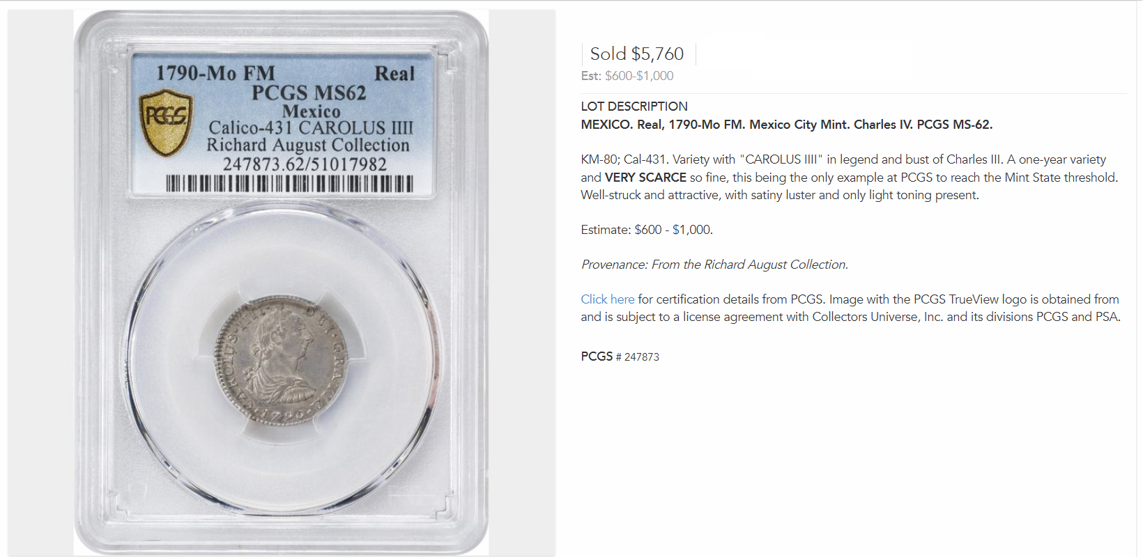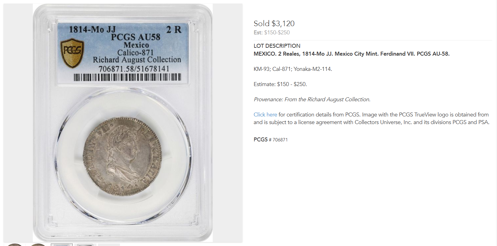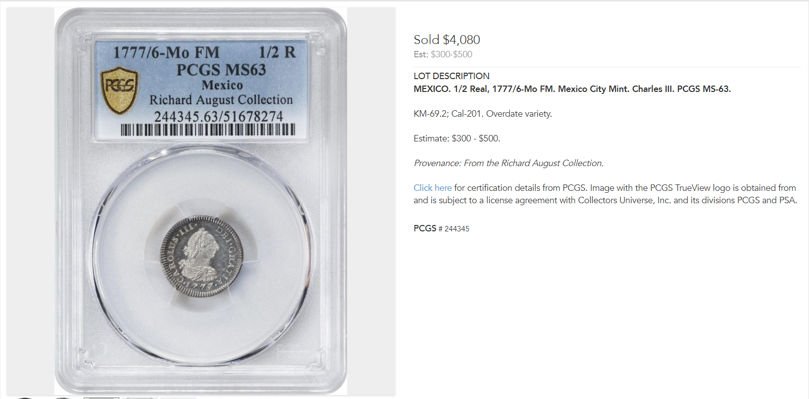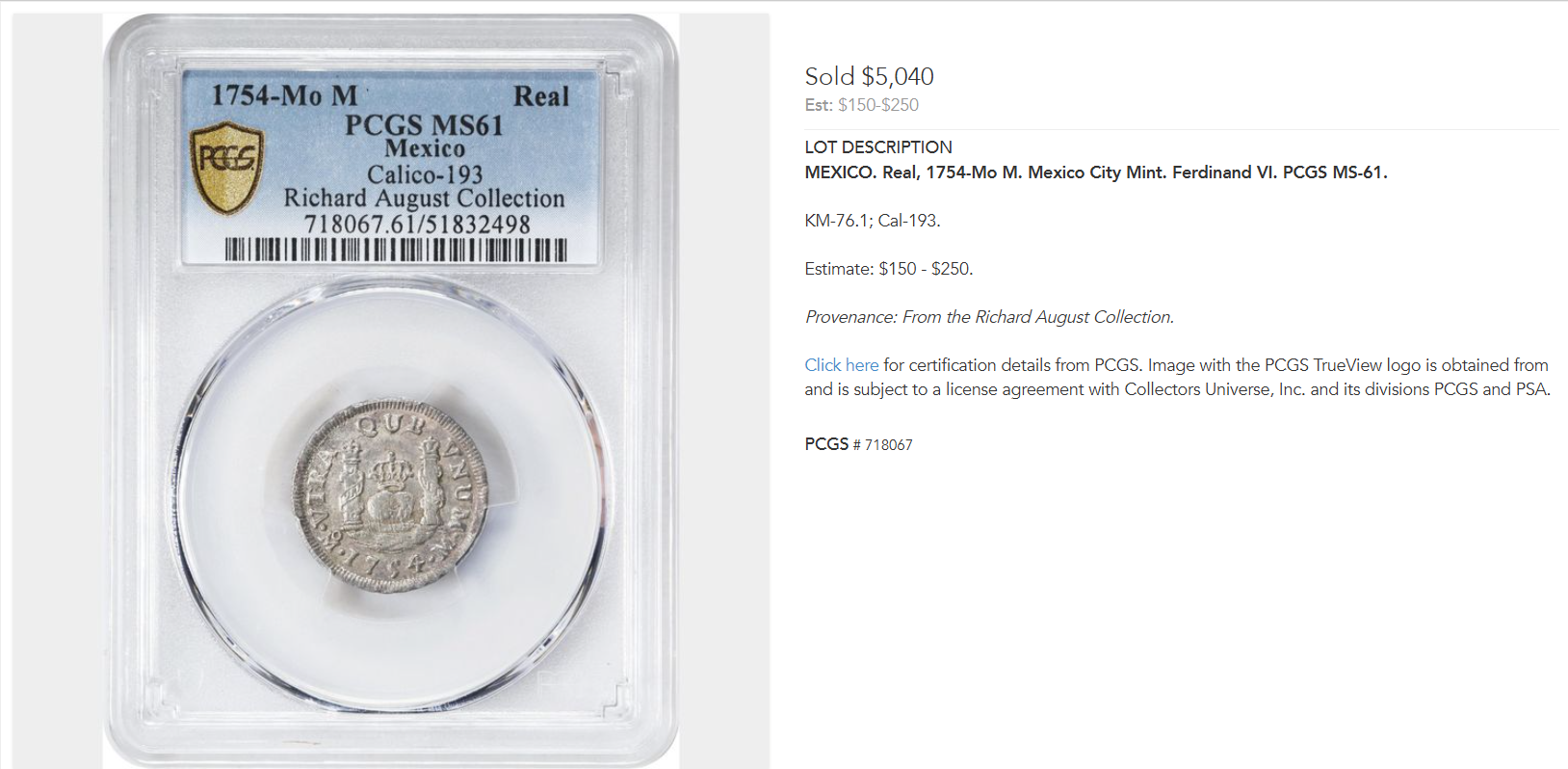 I think this is something else. My bet is that there’s a few bidders that are aware of each other and fighting over the same material. If those people weren’t interested in the coin, it went pretty normal, pricewise. I started paying attention to the bidders, many of the paddles for the top Mexican minors were the same paddles (the same five or six of them.) The funny thing is, The coins that went BONKERS weren’t the best coins out there. The 4R 1757 XF45 went for about 4X expectation, there’s 5 coins graded higher JUST in the PCGS census. Certainly more in NGC, puts it outside condition census probably.
