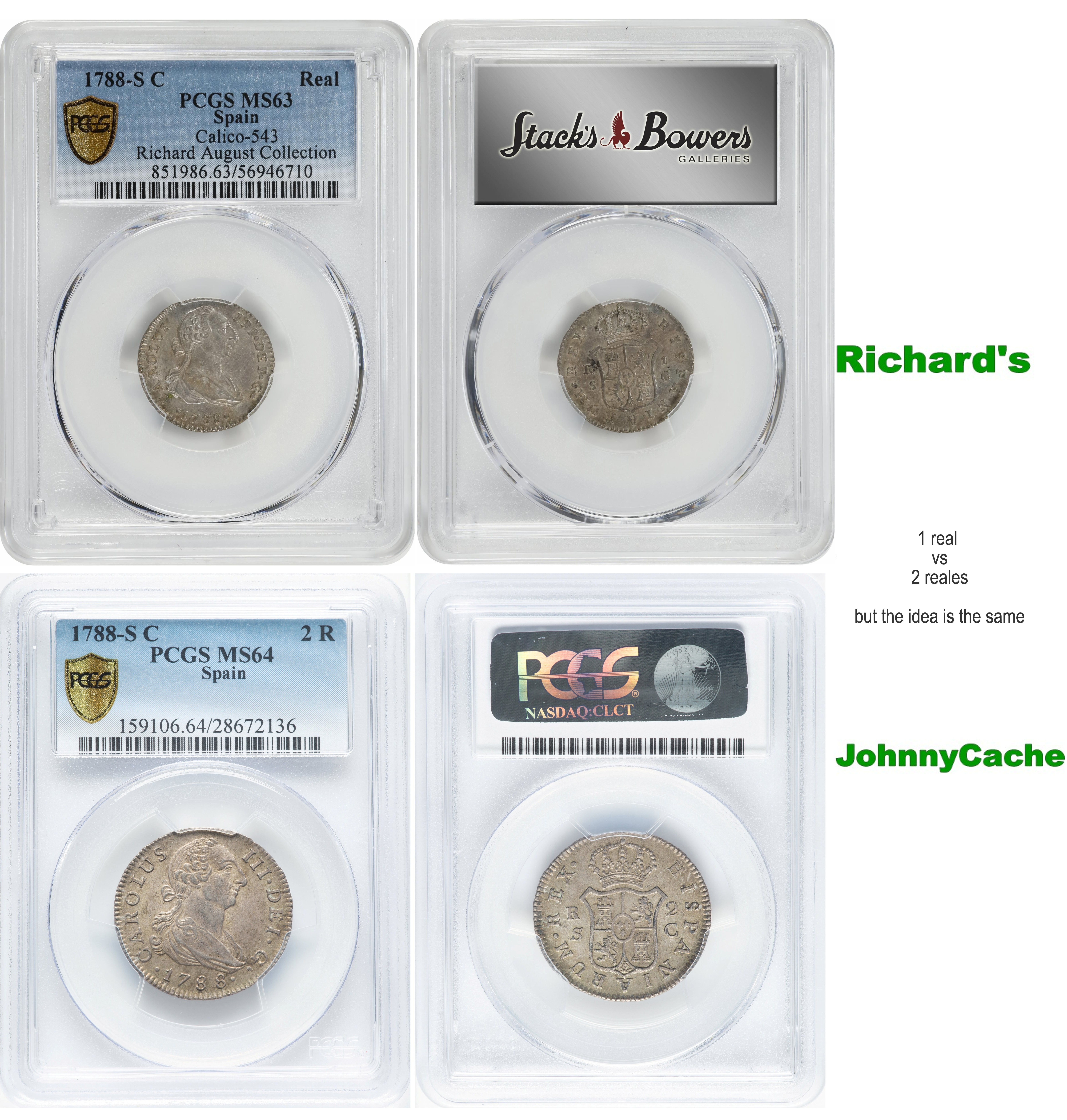 It seemed to me that the majority of his Spanish Colonial collection at least was housed in PCGS holders with a few NGC sprinkled in.