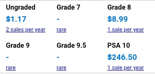 There are several of those cards on ebay and one just ended at $81. Some have sold for less, some for more, but none as high as $250 that I can find.