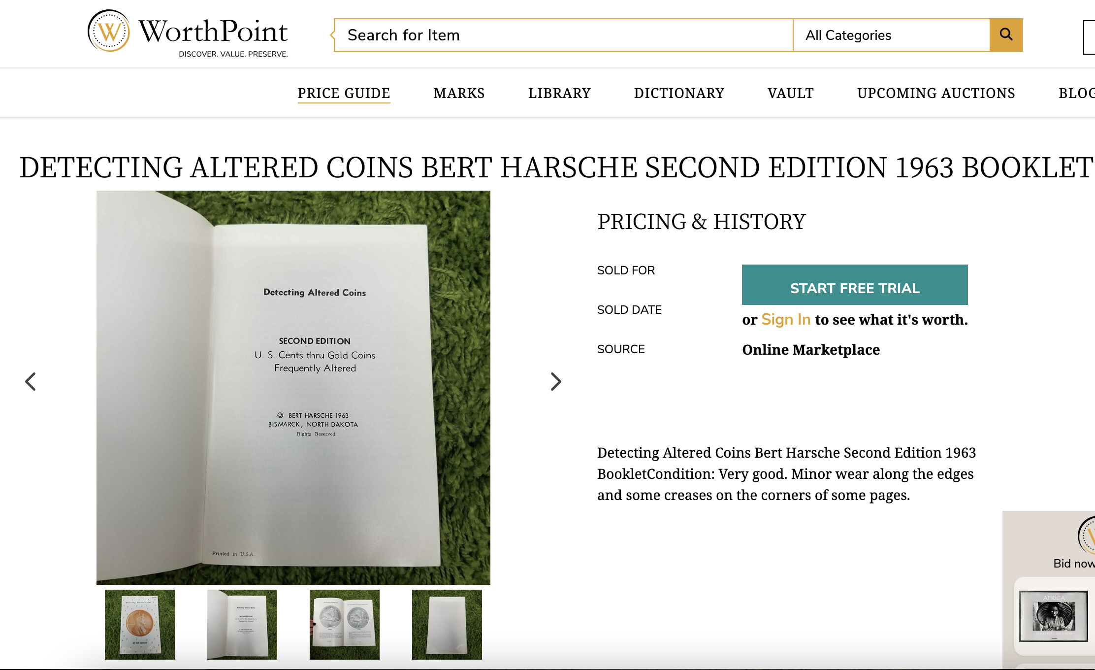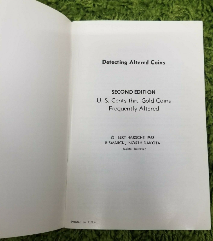 The photos of the Second Edition of Detecting Altered Coins are clipped from an original eBay listing that was archived on Worthpoint (see: https://www.worthpoint.com/worthopedia/detecting-altered-coins-bert-harsche-4641589989 ). I will add that Worthpoint is not my website, nor do I have any editorial privileges there.