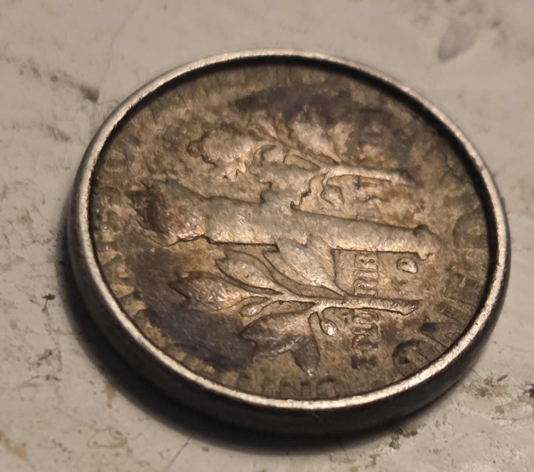 Acetone ain't going to do a thing to "lighten up the color," as you say. Why are you encouraging this newbie to use acetone on this coin? Acetone is expensive. Would be better to use a "bright dip" on this dime to "lighten it up."