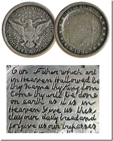 1. Coins engraved with The Lord's Prayer.