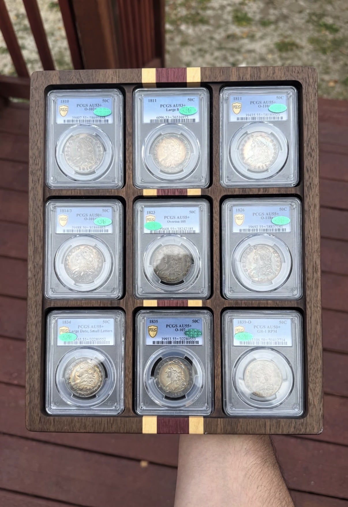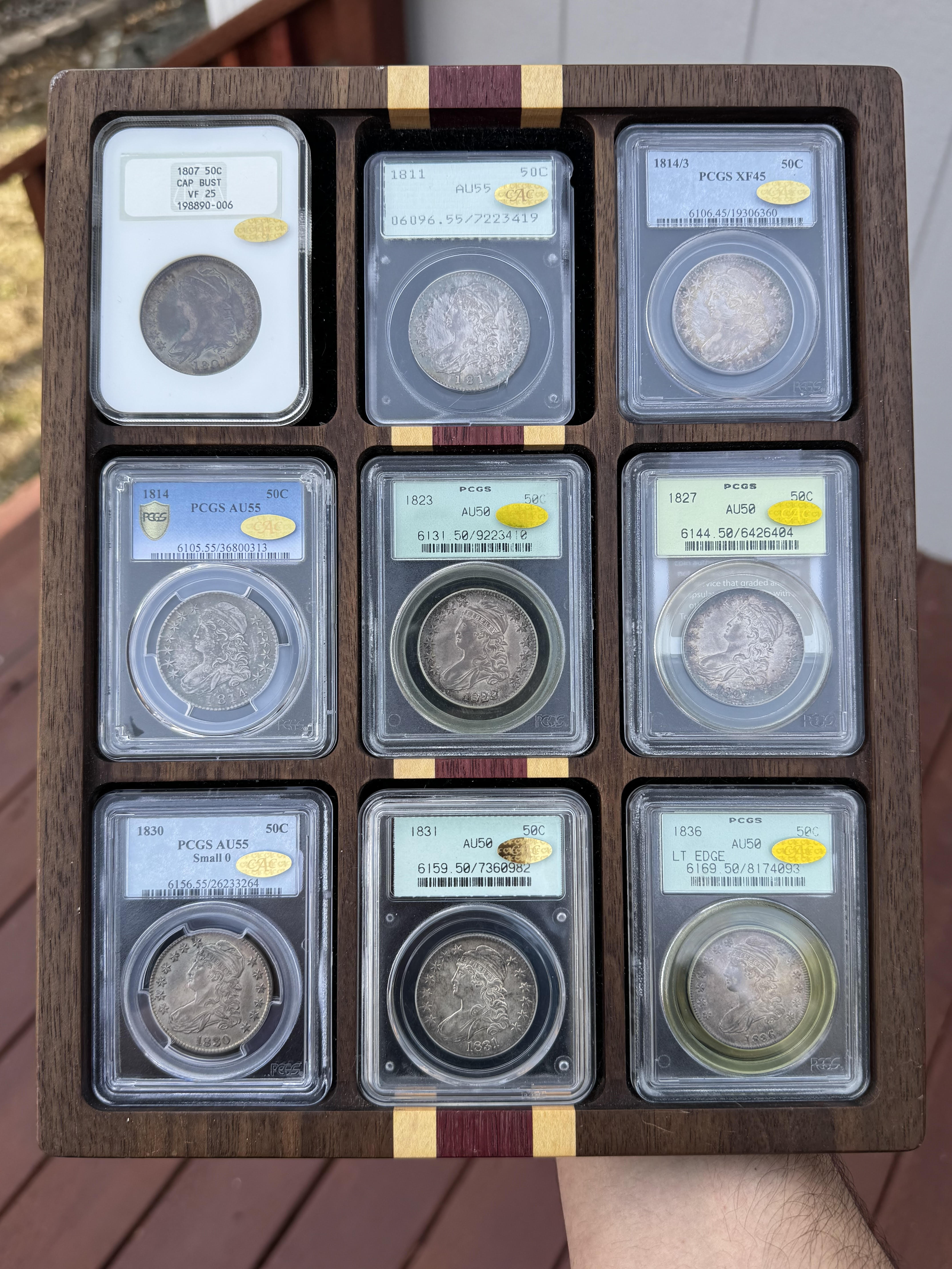 I mostly collect Capped Bust Halves, preferably with cracks, clashes and other later die state characteristics, and ideally in grades in and around AU53 to AU58, with some outliers here and there. Since I show them off here, and because of the Club I belong too, I think most people here might know that.