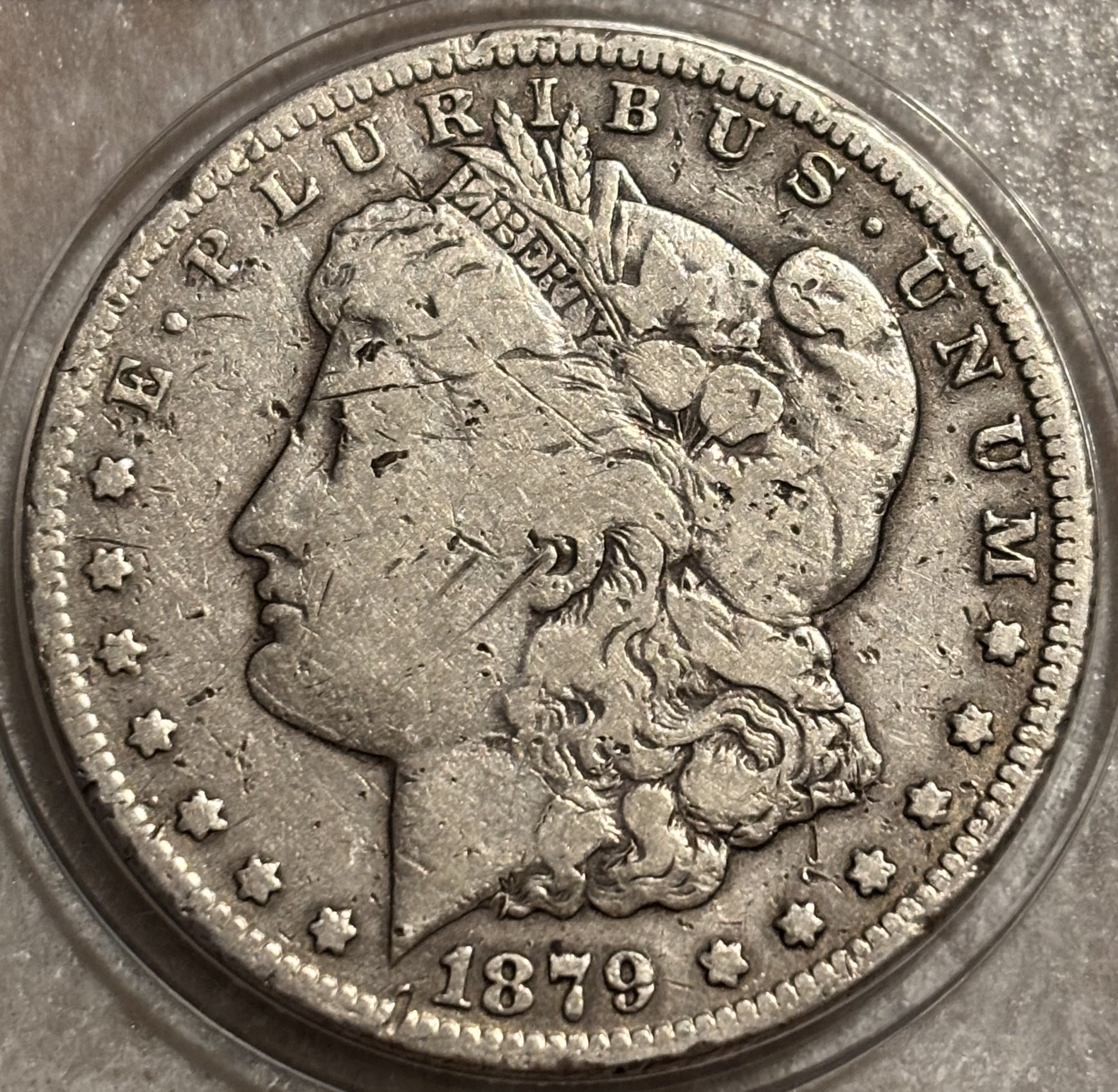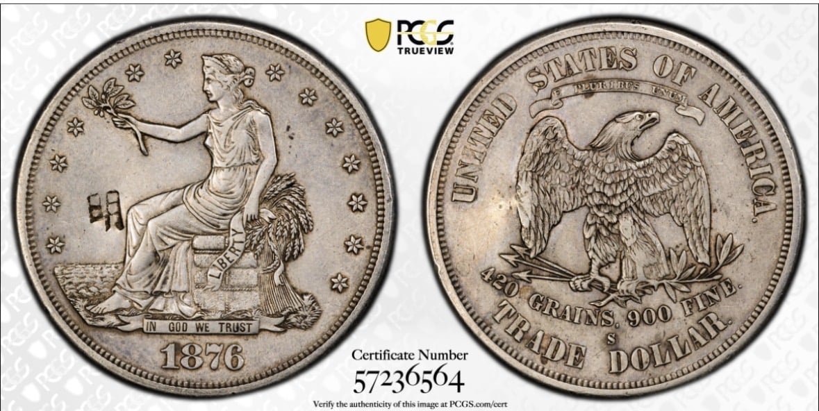 This is one of my submissions. You’ll notice the damage from a chop mark which doesn’t bother PCGS when it comes to grading. Then there’s this chopped up dollar. I wouldn’t bother submitting, but would probably be VG details (damage).