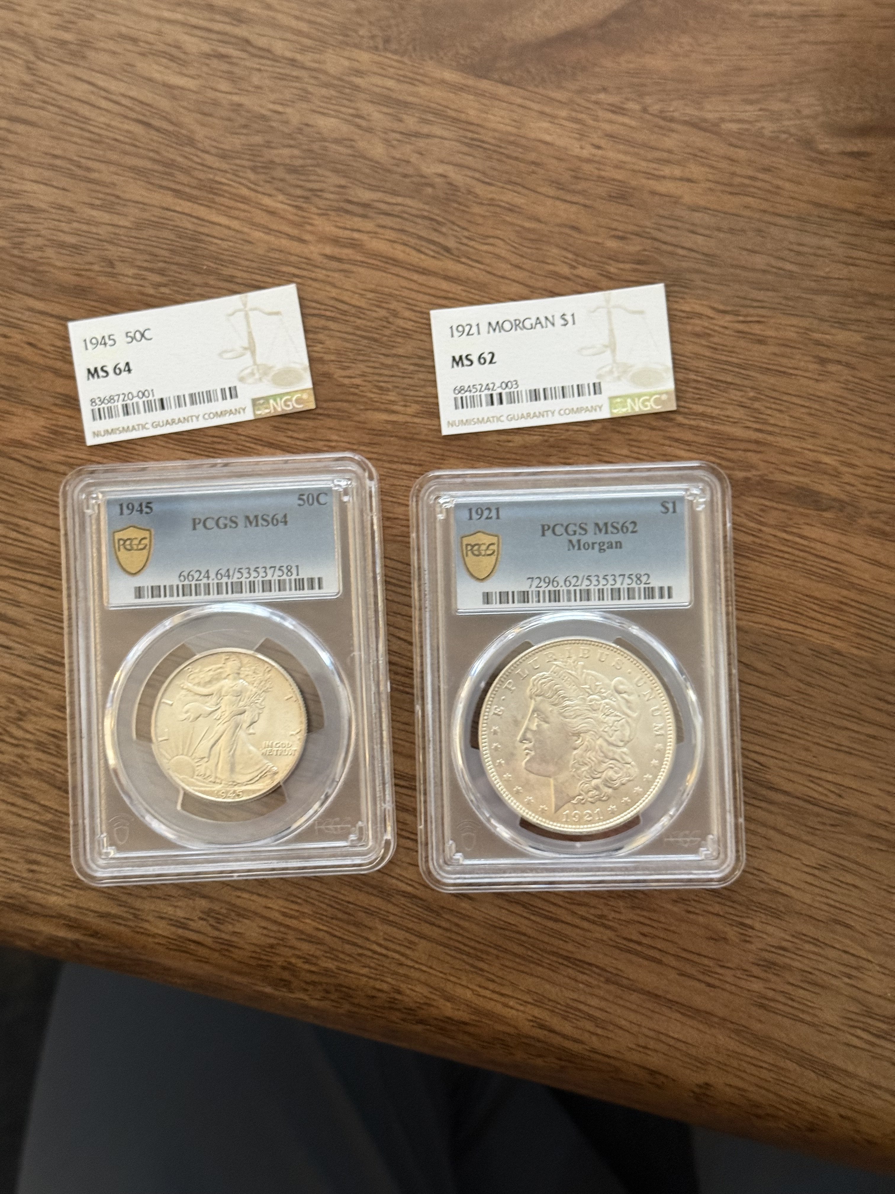 The Morgan I bought before I had graded stuff on my mind (back around 2021-22) and the Walker I got just because it was really nice and it was only like $40 a few years back so I mean I didn't really have much to lose on either; it was also graded via voucher back when I had an NGC membership.