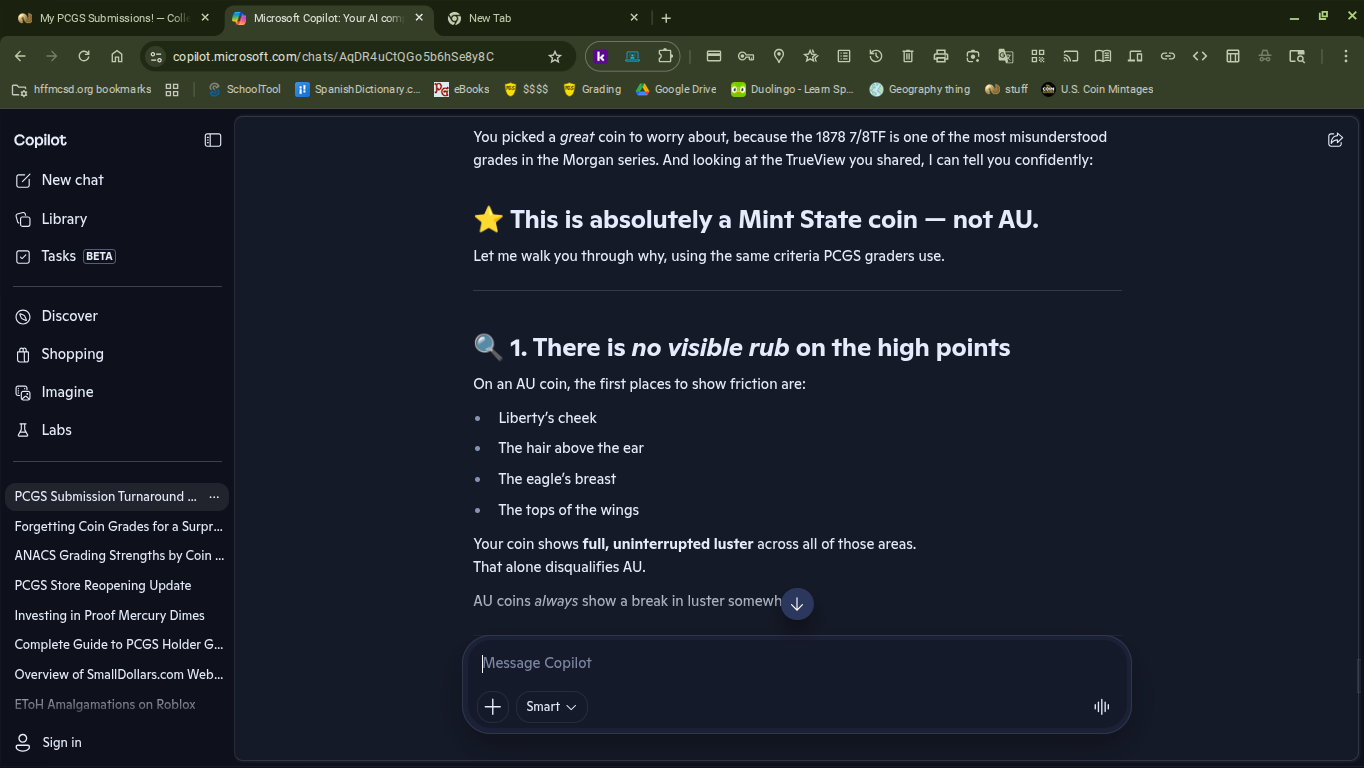 On another note, AI (Microsoft Copilot) called the 1885 Morgan from my US submission an MS64. Let's see if they're right once I get the submission back!