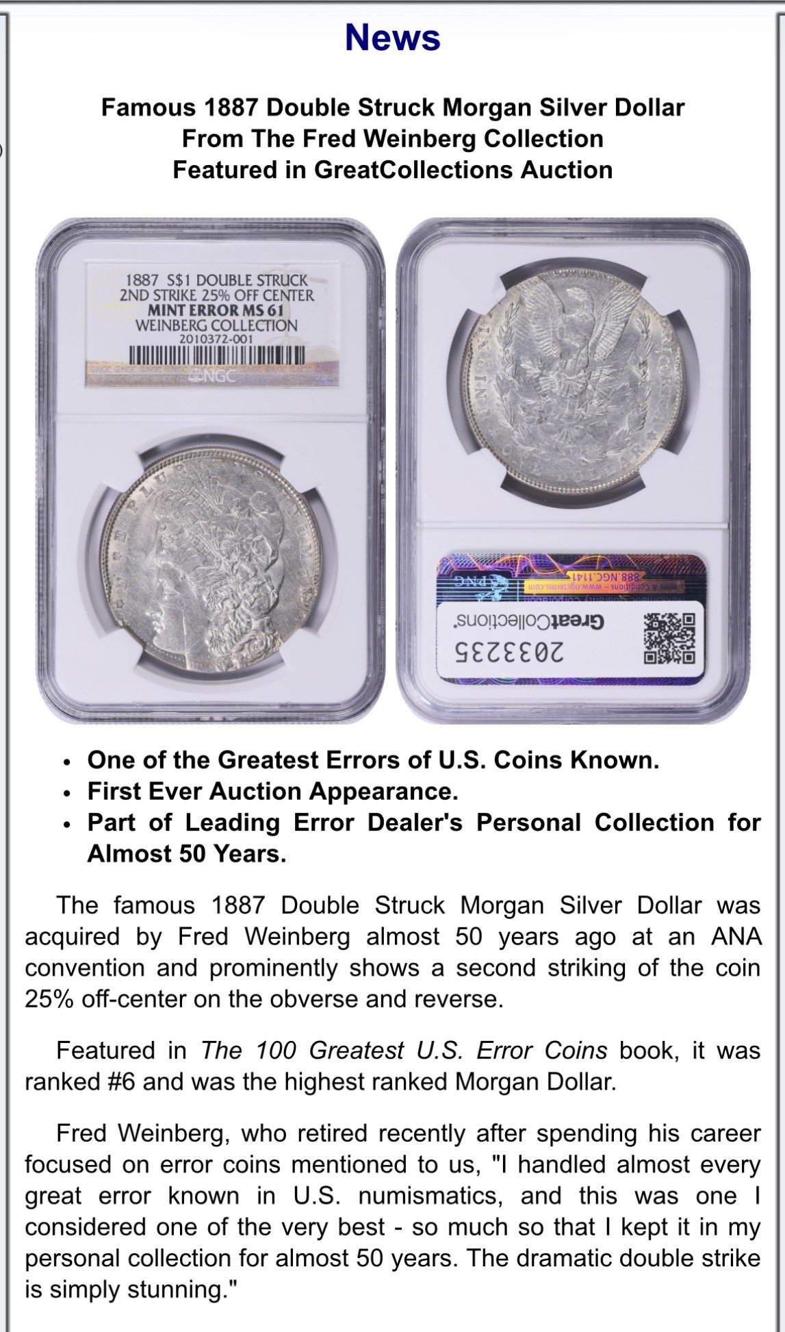 https://minterrornews.com/news-2-26-26-famous-1887-double-struck-morgan-silver-dollar-from-the-fred-weinberg-collection-featured-in-greatcollections-auction.html