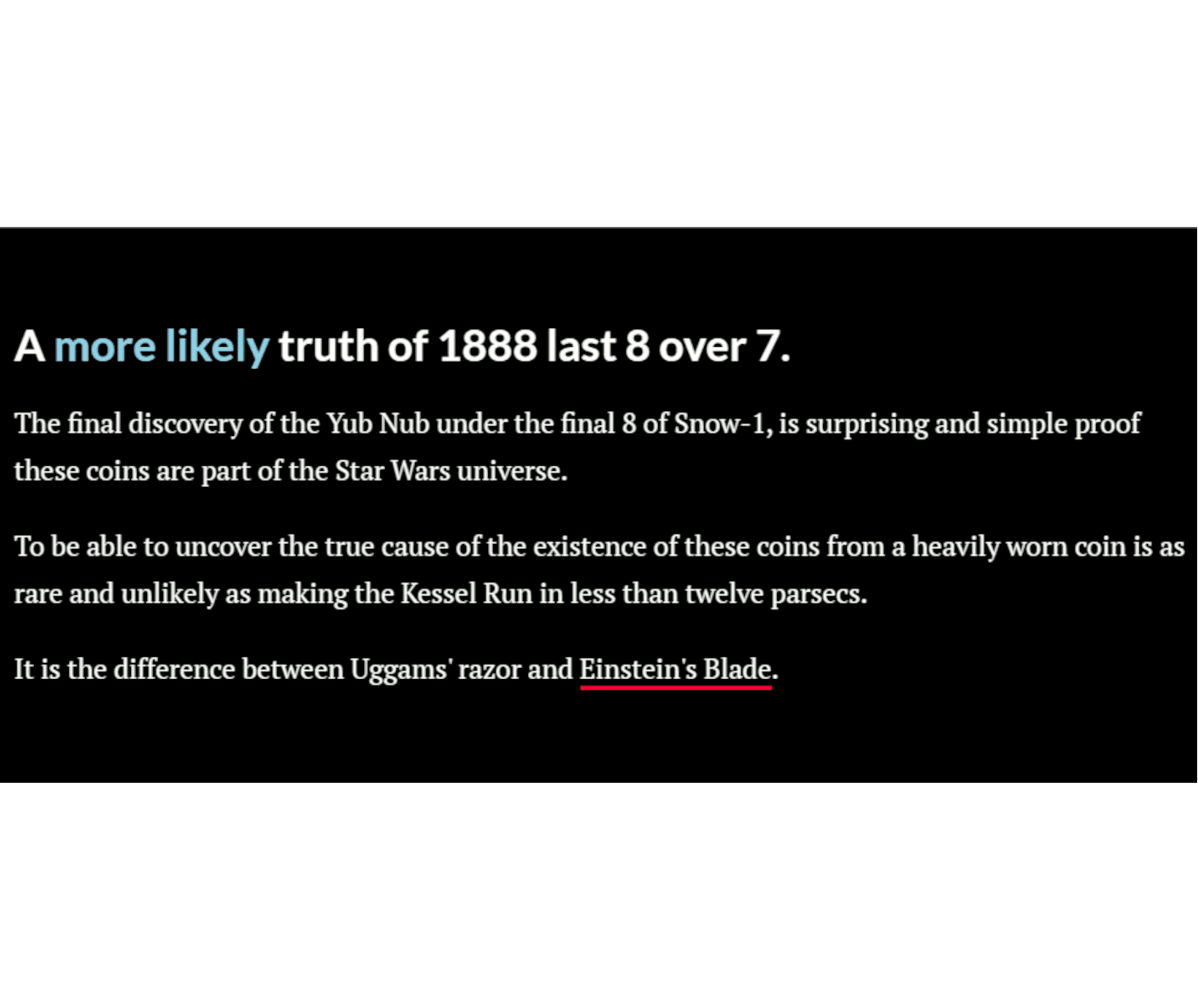 All due respect to your stature related to your extraordinary experience as a collector. The technical expertise that is needed to prove the truth of the origin of 1888 Snow-1 is not a requirement of the persons you suggest I submit this hypothesis to.